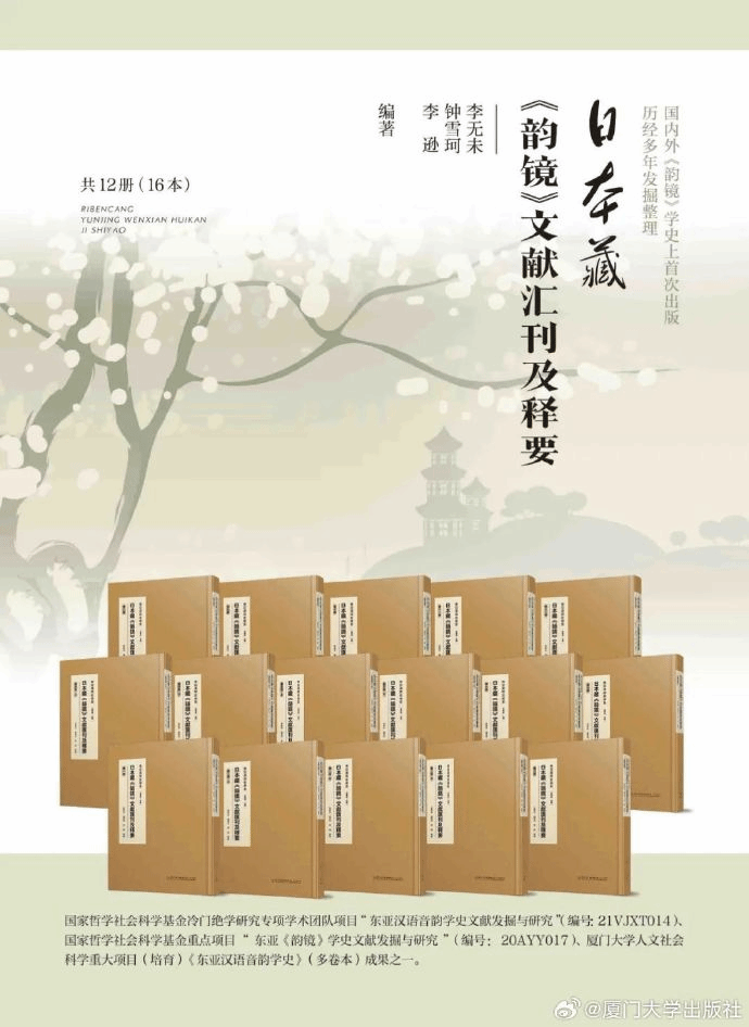 据悉,项目前期成果《日本藏<韵镜>文献汇刊及释要(12册16本)》(厦门大学出版社,2023年版,责任编辑牛跃天)已先行出版。该书由李无未、钟雪珂、李逊编著,是国内外首次大规模系统汇刊日本藏《韵镜》文献的学术著作,获评厦门大学出版社2023年度好书。在近期公布的各级社科成果评选中,该书接连斩获佳绩:2025年11月获厦门市人民政府第十三次社会科学优秀成果一等奖,随后又荣获福建省第十六届社会科学优秀成果二等奖,充分印证了项目研究的学术影响力与社会认可度。