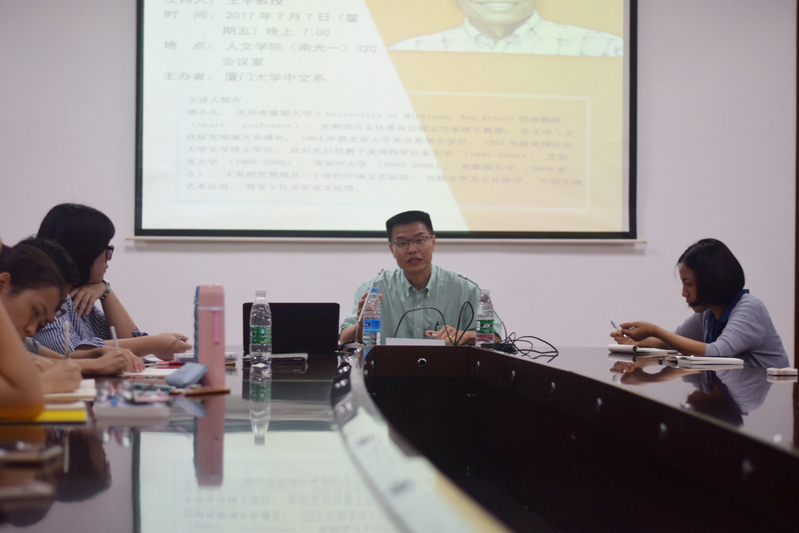 2017年7月7日晚上7点,应厦门大学中文系邀请,美国密歇根大学( University of Michigan, Ann Arbor)讲席教授(chair professor),亚洲语言文化系及比较文学系终生教授,海外中国现代文学研究领域著名学者唐小兵教授莅临我校,在我院320报告厅举办了题为“美国的中国现当代文学研究范式及其启示”的讲座。讲座由中文系教授,厦门大学现当代文学教研室主任王宇教授主持,中文系相关专业的师生、其他专业的文学爱好者以及外校的一些青年教师慕名参加了此次讲座。