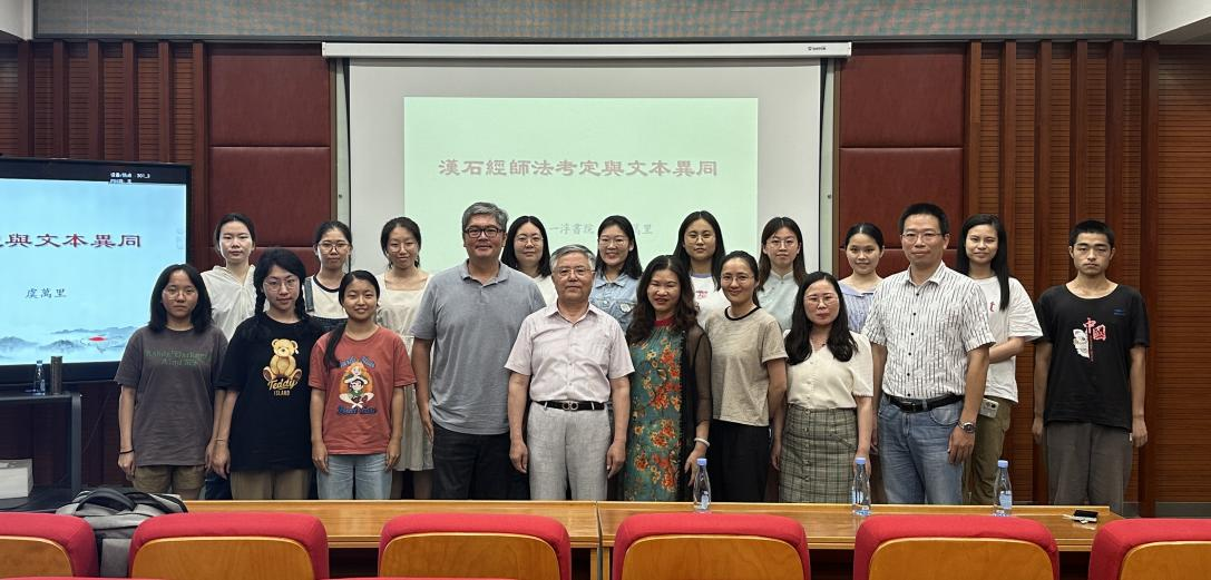 2023年6月13日晚19:00,浙江大学马一浮书院敦和讲席教授、《经学文轩研究集刊》主编、中国训诂学会副会长虞万里在思明校区南光一101报告厅为中文系拔尖班学生作了题为“汉石经师法考定与文本异同”的讲座。讲座由中文系叶玉英教授主持,参加讲座的还有本系部分教师和研究生。