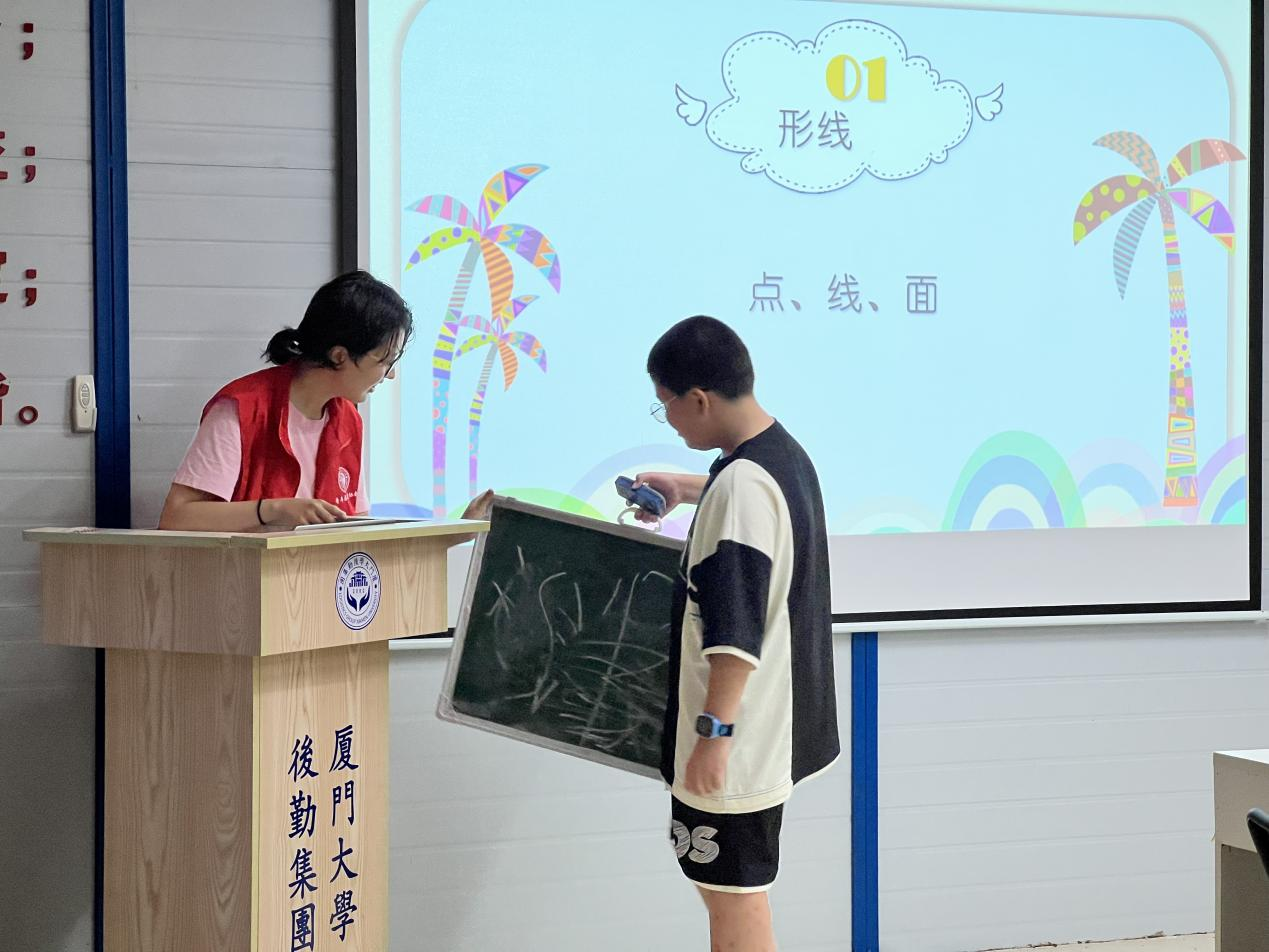 绿槐高柳咽新蝉,薰风初入弦。在这个生机勃勃的六月,“后勤集团职工子女公益小课堂”第十二期、十三期相继在厦门大学思明校区水电实训室顺利开展。四位厦大青年志愿者为参与活动的小朋友们带来了生动有趣的海洋知识分享和充满奇思妙想的绘画创意启蒙。