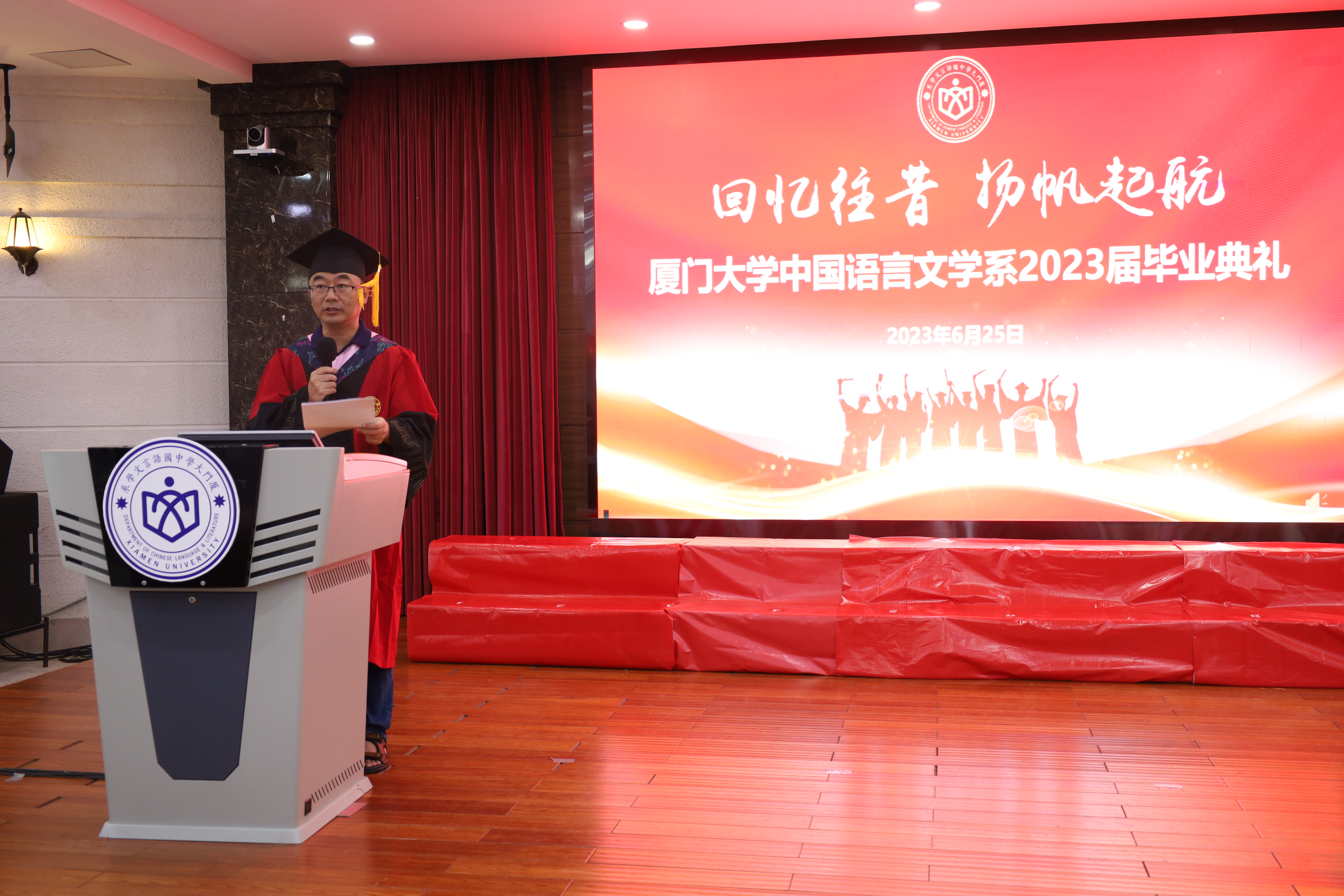 六月凤凰花开季,厦园离别弦歌起。6月25日下午,厦门大学中国语言文学系2023届毕业典礼在联兴楼多功能厅隆重举办,系领导班子、教师代表、辅导员、行政人员及远道而来的家长和亲友一齐出席本次活动,共同见证2023届毕业生这一值得庆贺的重要时刻。典礼由系副主任李焱教授主持。