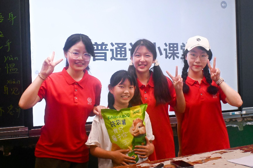 最后,实践队成员们认真解答了同学们关于普通话与方言的其他疑问,并为大家颁发了相应奖品,小课堂在欢笑声中顺利结束。