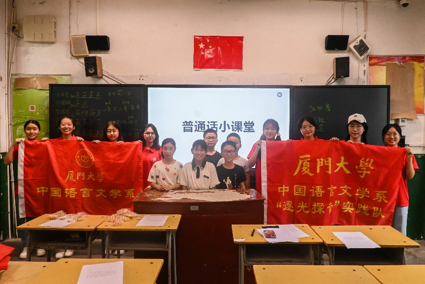为助力我国民族地区、农村地区国家通用语言文字推广及方言保护工作,培养学生规范用语与用字的意识,鼓励其在学习普通话的同时增强对本地方言的保护,8月10日,厦门大学中国语言文学系“逐光探音”实践队于南平市光泽县开展面向小学生的普通话小课堂。