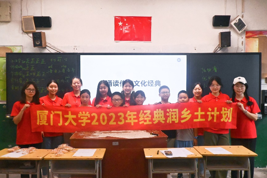为深入学习贯彻习近平总书记关于教育的重要论述,促进中华经典文化在乡村浸润传播,传承弘扬中华优秀语言文化,提升语言文化素养,助力乡村振兴,厦门大学中国语言文学系联合国家语言文字推广基地(厦门大学),发挥自身专业优势,组建成“逐光探音”暑期实践队,于2023年8月10日走进福建省南平市光泽县的学校,面向县乡的小学生开展中华经典文化和普通话小课堂。