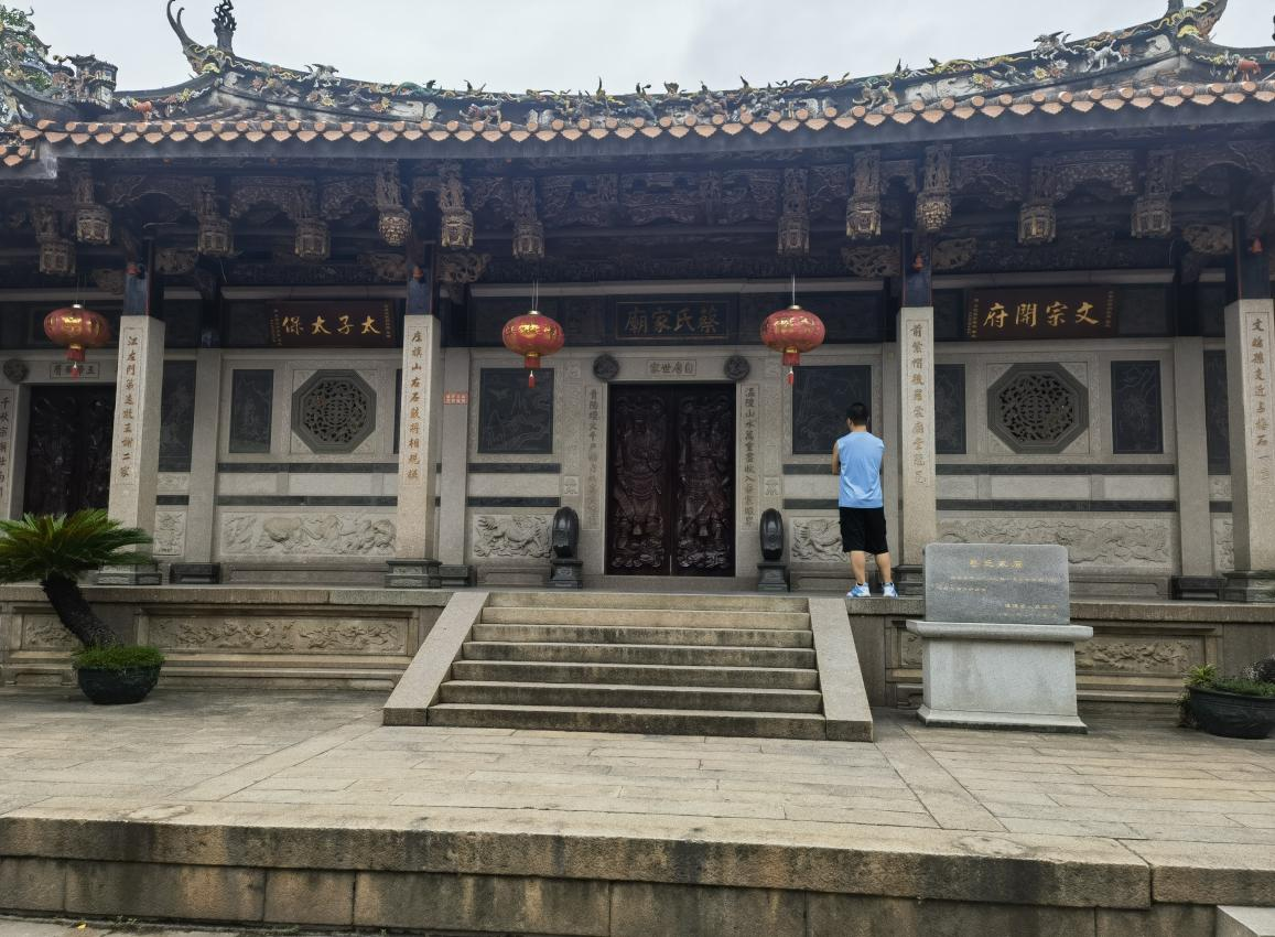 在晋江五店市,实践队员们首先前往蔡氏家庙进行调研。蔡氏家庙以“青阳衍派”为堂号,取自附近的青阳山。古人一向敬畏山水,氏族也以山水为倚仗。家庙的负责人向队员们介绍道,蔡氏家庙每年都会举行冬祭、春祭两次大祭,团结族人;除此之外,每当有族人寻来认祖归宗,也会举办正式的仪式。今年8月,就有台湾同胞携带族谱回到蔡氏家庙祭祖。
