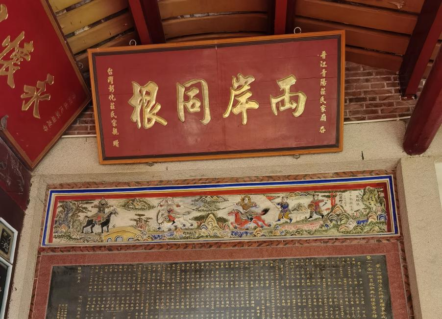 同样坐落于青阳山脚下的,还有庄氏家庙。实践队员们注意到,堂上有“明德惟馨”四字牌匾,由青阳蔡氏祖表亲赠,显示两族地缘接近、亲厚相助。庄氏遥敬庄子,以理学名臣为榜样,教养族中子弟。家庙附近是旅菲华侨庄朝北的大厝,厝中存有庄氏家训:“君子所存之心,只是爱人敬人之心,盖人有亲、疏,贵、贱,智、愚,贤、不肖,皆吾同胞。”体现了超越时代的仁爱与包容。