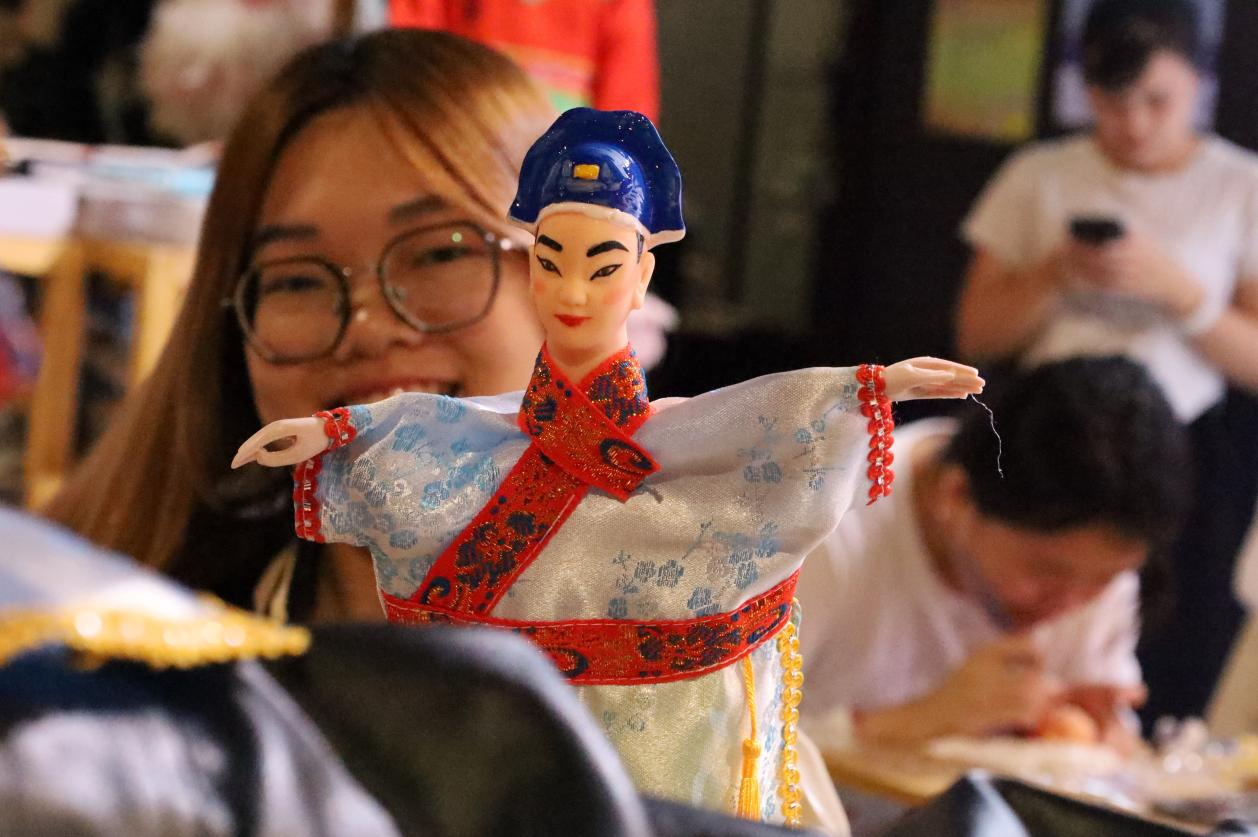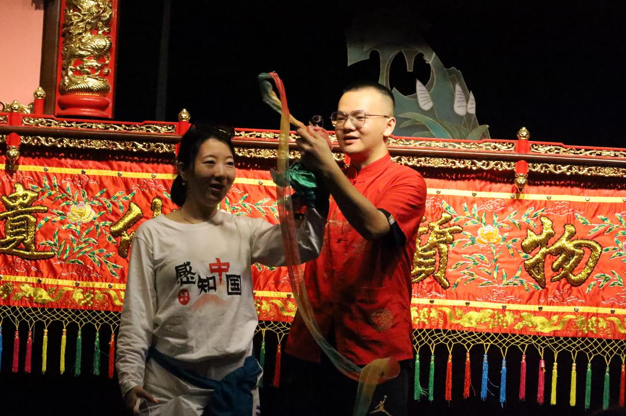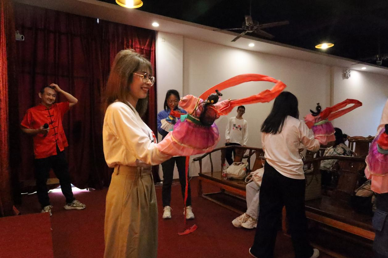 满怀着好奇和激动,同学们纷纷上手体验木偶戏操作,小小的木偶在手中仿佛有了生命。木偶戏艺人们与同学们热情互动,展示日常训练的基本功,看似简单的手指动作,却对协调性和灵活性有着极大的要求,同学们在尝试的同时,也惊叹于木偶戏艺人的高超技艺。一位留学生表示:“第一次看到这么好玩又好看的木偶戏表演,对中国的认识又加深了。”其他留学生们纷纷赞同:“希望有更多人能够感受中华优秀传统文化的魅力!”