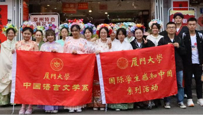 为加深国际学生对中华传统文化与民风民情的了解,讲好中国故事,传播好中国声音,11月11日,在厦门大学学生工作(部)处的指导下,中国语言文学系组织中外学子开展了厦门大学国际学生“感知中国”活动之“解锁非遗密码,留‘厦’感知中国”文化体验活动。来自学校各个院(系)的近20名中外学生在带队老师的带领下奔赴历史文化古城——泉州,感受国家非物质文化遗产——蟳埔女习俗,领略当地文化特色和乡土人情,开启了一段充满闽南风情的文化之旅。