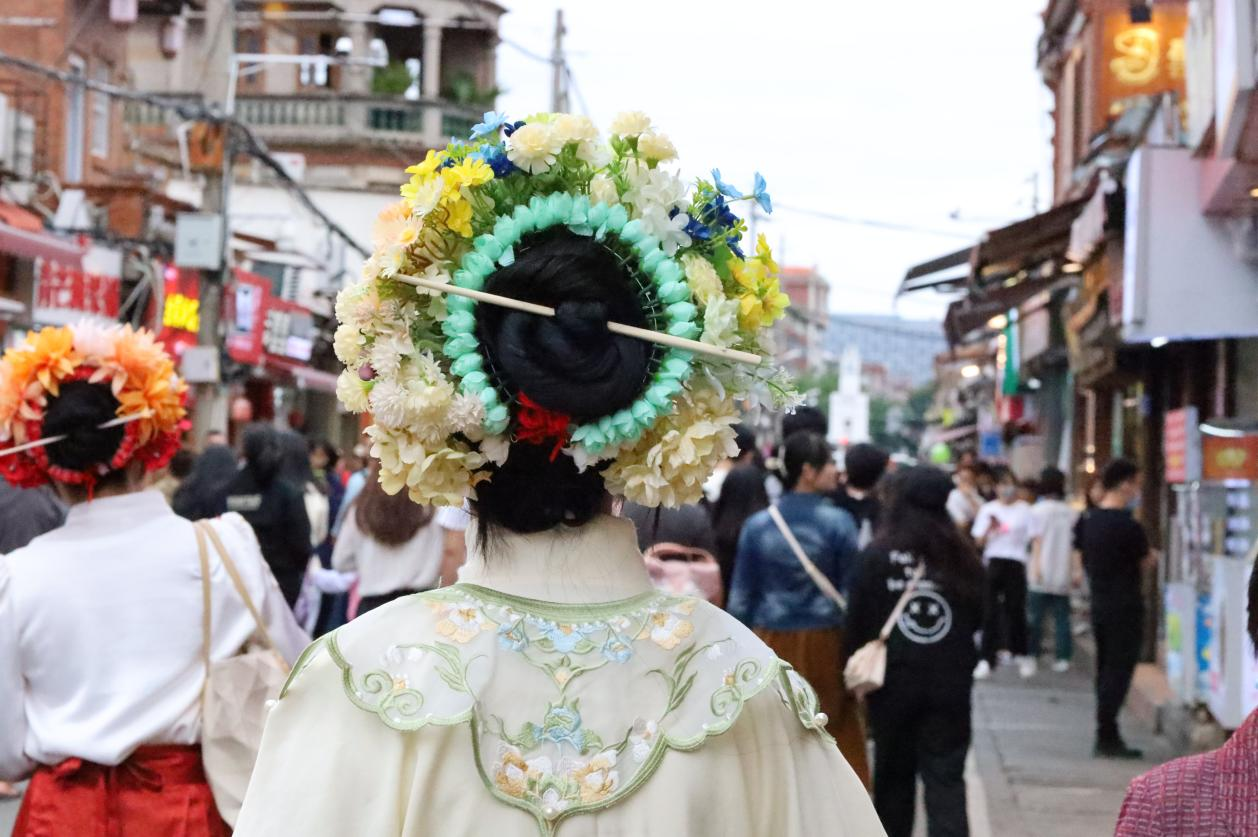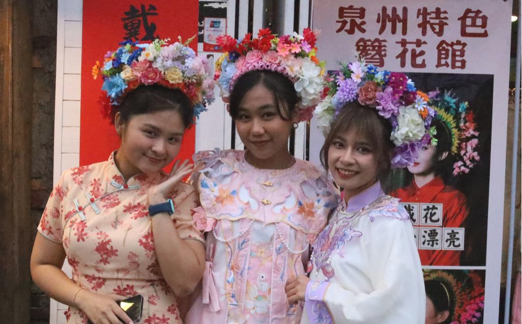 从簪花习俗中,我们也看到了海洋文化在形态上表现出的兼容性,泉州文化多元,侨民数百万,既有蟳埔女习俗这样的当地传统生活文化,也有侨民带来的中外融合生活文化。泉州古城以其古朴、热情、淳厚的文化氛围,让国际学生看到了开放、自信、包容的中国。