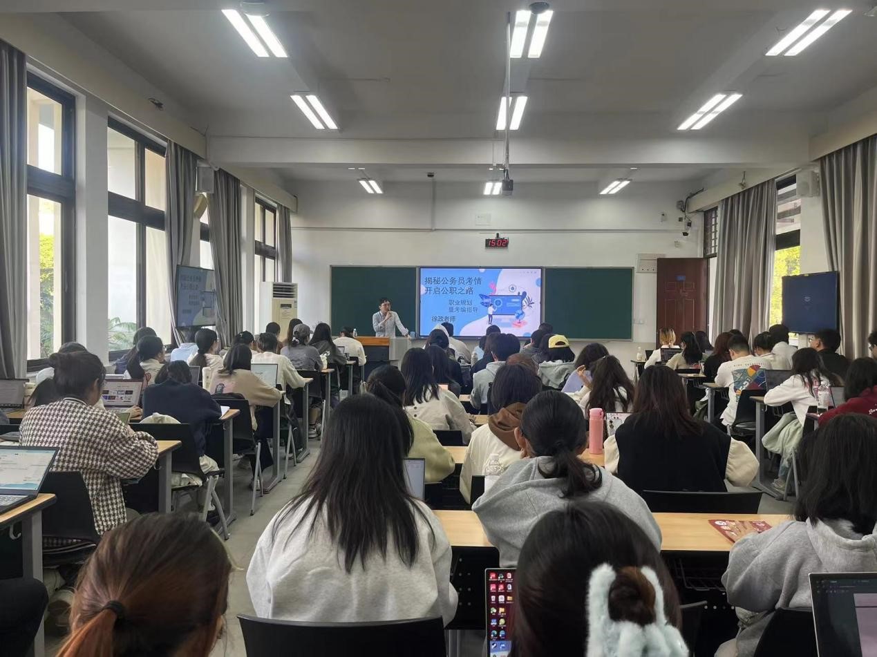 分享会正式开始。主讲老师带领大家了解考编的基本内容,介绍公务员和其他编制的报考流程和时间节点。此外,主讲老师还专门针对我系专业情况,着重分析了中国语言文学类考编岗位。