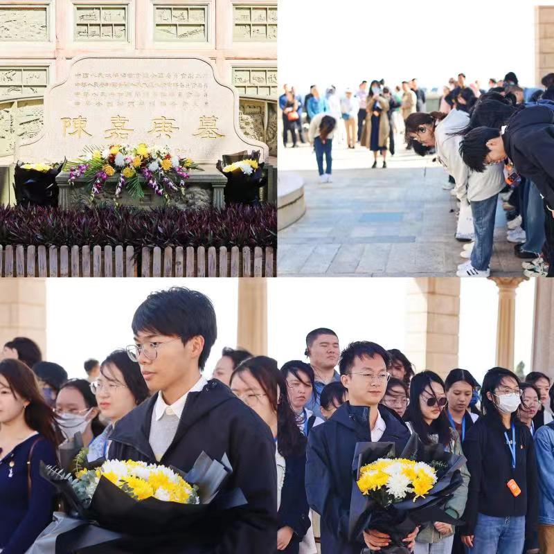 参观结束后,讲解员带领团员青年前往鳌园参观,团委辅导员李莹斌和学生代表梁文捷向陈嘉庚先生敬献花束,全体青年团员在陈嘉庚先生墓前默哀一分钟。