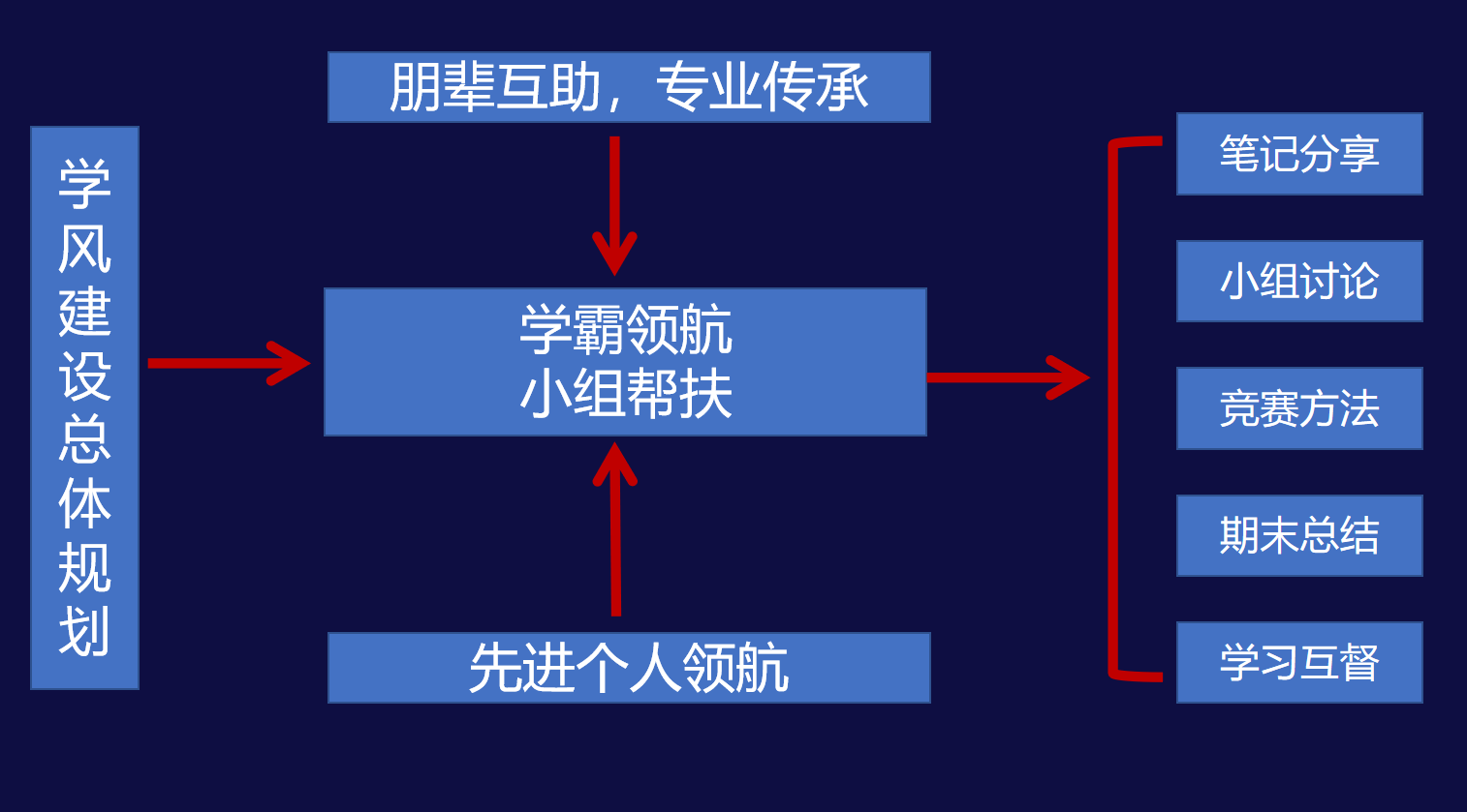中文二班建立了特色领航制度,全员参与,互助学习,依托本班级特色思想建设及大类培养教学方案,学风建设上形成一套行之有效的特色方案,为班级成员的学业保驾护航。通过小组的帮扶学习、集体活动的沟通交流,营造了良好的学习氛围,全班同学齐心协力,锐意进取,共同进步。在互助学习的同时,班级同学也积极参加社会实践,以实践促学,参加逻辑大赛、户外实践、志愿活动等等,丰富大学生活。