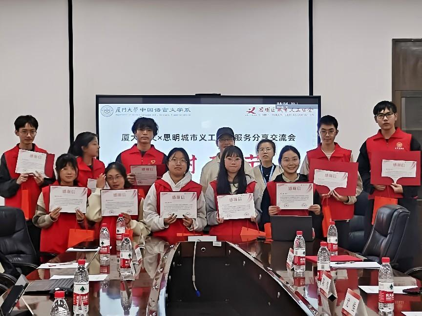 爱的交付有回音,志愿者无微不至的关怀换来了家长们的由衷感谢。在会议的致谢颁奖环节,思明区城市义工协会秘书长陈伟表达了对中文系师生的感激,并代表协会为每位辛勤付出的志愿者颁发奖状。