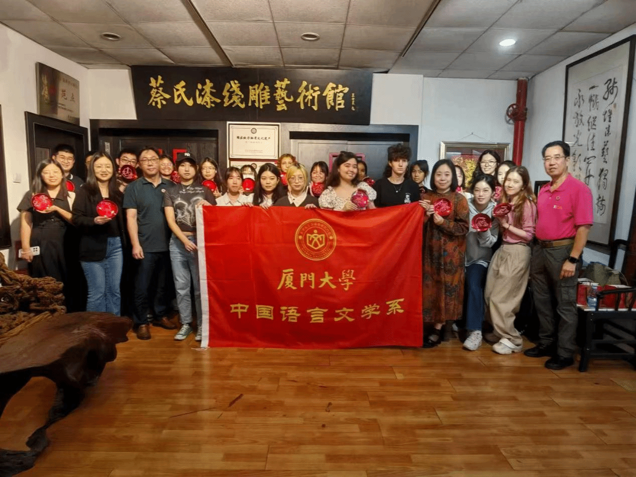 2024年11月14日下午,由厦门大学中国语言文学系组织的一场独具匠心的“感知中国”活动在厦门市思明区的蔡氏漆线雕传习中心顺利举行,此次活动吸引了全校各个院(系)近40名中外师生参与。