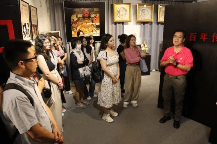 蔡氏漆线雕艺术馆顾问张学平首先带领师生深入艺术展示厅,详细了解漆线雕的历史背景、制作工艺及其传承与创新之路,张老师生动的讲解让同学们了解了漆线雕艺术的悠久历史。同学们还欣赏了蔡氏漆线雕在各个阶段的代表作品,这些作品不仅展示了精湛的漆线雕艺术,更体现了匠人们对传统文化的坚守与发扬,近距离的观赏令同学们对漆线雕艺术的精美与细腻叹为观止。