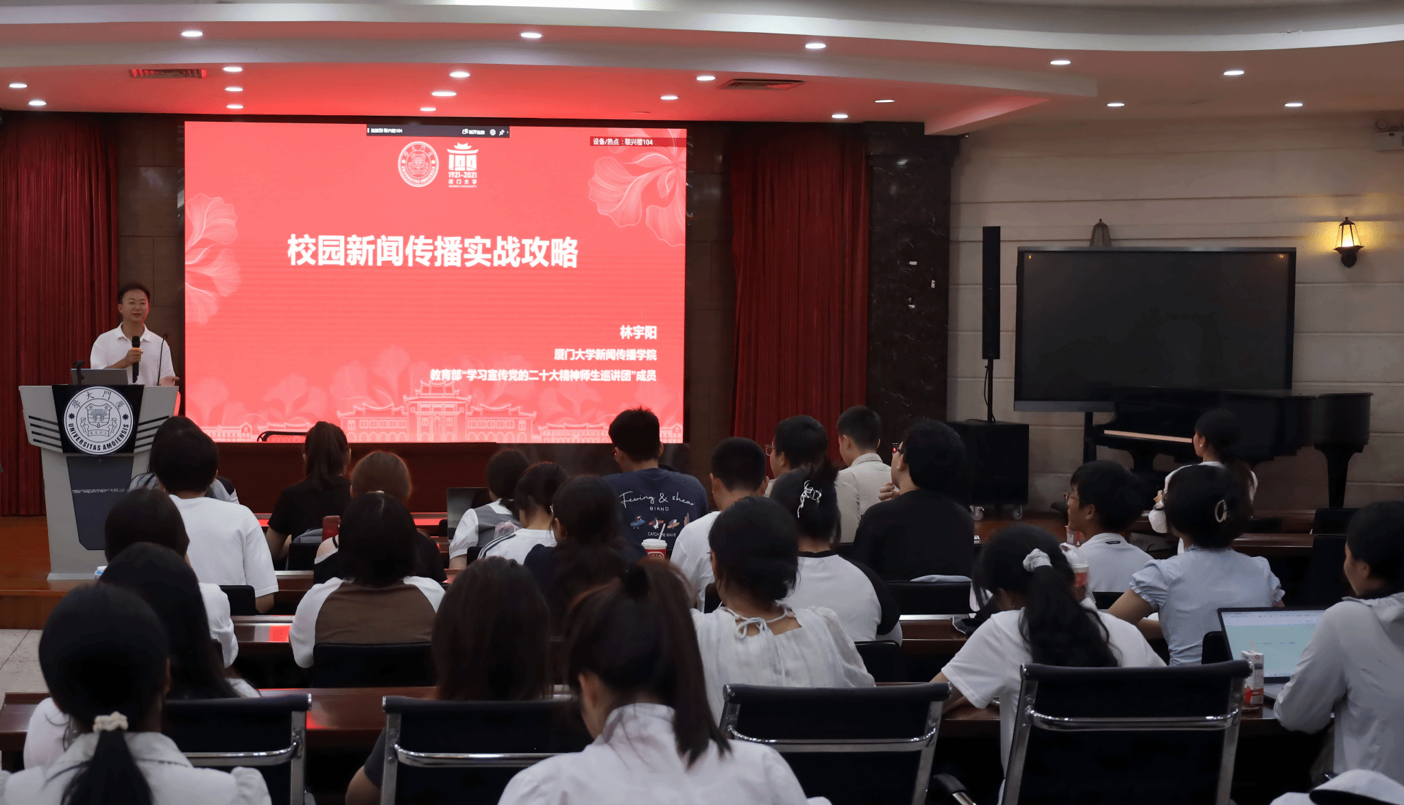 为全面提升中文系宣传队伍的专业能力与综合素养,9月29日中午,中国语言文学系于联兴楼104会议室成功举办宣传工作技能培训会。本次培训特邀视觉中国签约摄影师、中国日报厦门事业发展中心主任助理、厦门大学新闻传播学院全媒体中心负责人林宇阳,以及中国语言文学系宣传中心原主任、校融媒体中心学生记者团骨干编辑郑巧燕担任主讲嘉宾。培训会由中文系辅导员李莹斌主持。
