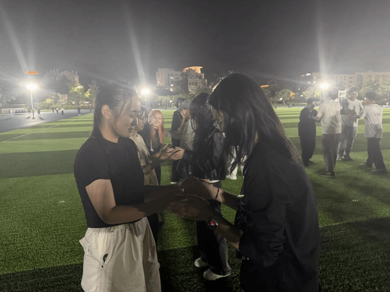将活动推向高潮的是考验团队协作的“解手链”游戏。同学们手拉手围成圆圈,形成错综复杂的“手链”。游戏中大家积极沟通、互相配合,原本缠绕的结在集体智慧下逐一解开。当成圈再现,现场响起热烈掌声与欢呼,每一位同学的脸上都写满成就感。