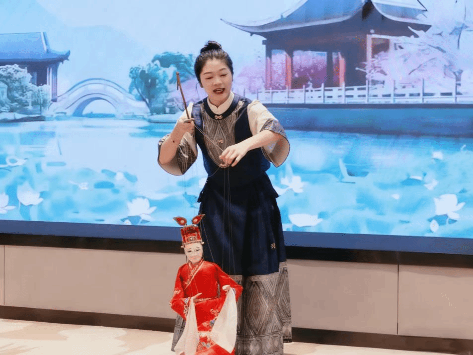 活动现场,省级非遗提线木偶传承人蔡冬梅带来《草蜢弄鸡公》等精彩表演。手指轻捻,丝线舞动,木偶在她操控下栩栩如生,每一个动作都凝聚着代代相传的匠心。