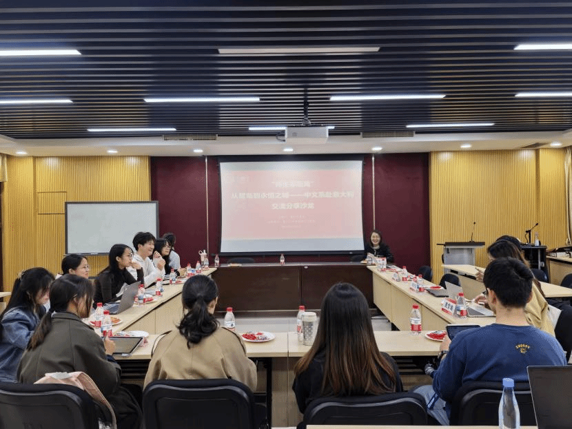 12月8日下午,中国语言文学系第三期“师生零距离”活动在联兴楼310会议室举行。本次活动中,曾赴意大利参与“第二届意大利现存东亚文献工作坊”及“第十四届中日意研究生语言文化交流研究论坛”的钟雪珂老师,与学生代表夏雪瑜、胡劼旻、黎轩彤、周丽华一起,以“从鹭岛到永恒之城:跨文化学术交流与研学实践”为主题,分享了海外参会期间的学术收获、实践见闻与个人感悟。