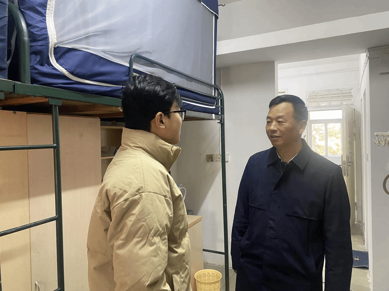 1月23日上午,中文系党委副书记蔡虎堂与辅导员李莹斌深入留校学生宿舍走访慰问,详细了解同学们的留校生活与需求,并叮嘱大家注意消防安全与假期防护,将关怀落到实处。