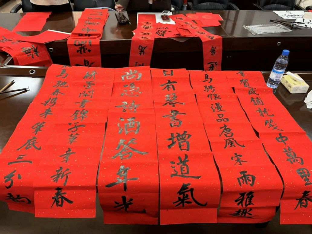 1月10日,南光320教室墨香四溢,中文系梧栖诗社与学校书画协会共同举办“喜迎新春”写春联活动。同学们将诗词雅韵融入笔墨之间,一幅幅春联承载着祝福与智慧,在红纸黑墨中流转生辉。活动现场暖意融融,同学们在亲身体验中感受传统文化魅力,展现中文系深厚的学脉底蕴。