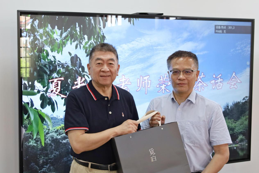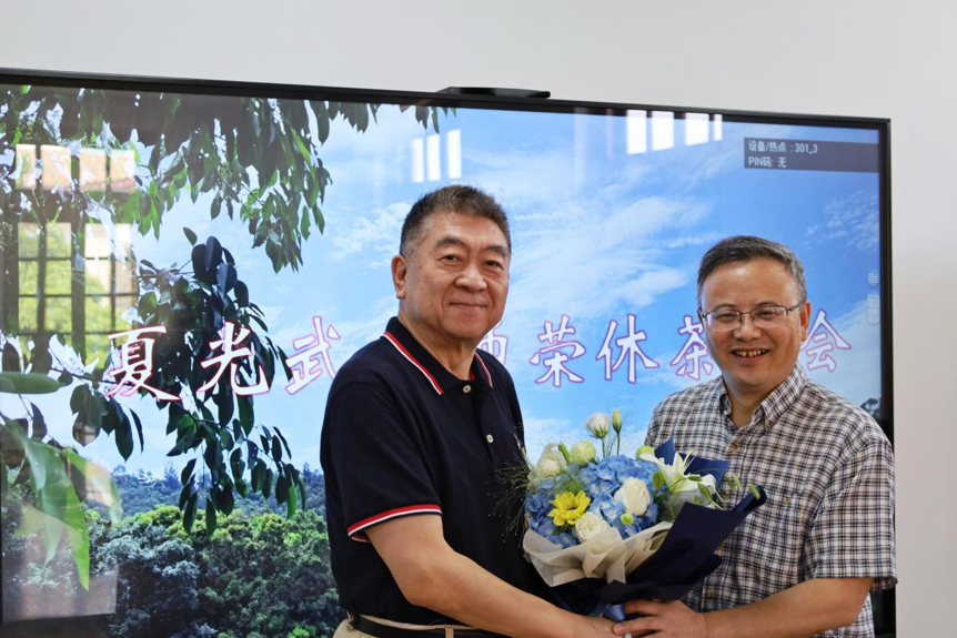代迅主任为夏光武老师送上鲜花,朱菁院长分别代表学院和学校为夏老师送上荣休礼物和纪念品。
