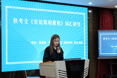 中文系七个教研室文艺学、古代文学、现当代文学、比较文学与世界文学、古代汉语、现代汉语、应用语言学共选出八篇优秀毕业论文代表本专业参加此次答辩。2018级中文系本科生罗新烨、廖琳琛、魏明烜、韩旭、胡蓉、曹爽、陈碧雪、黄倩雅依次上台,就各自的毕业论文进行五分钟陈述。