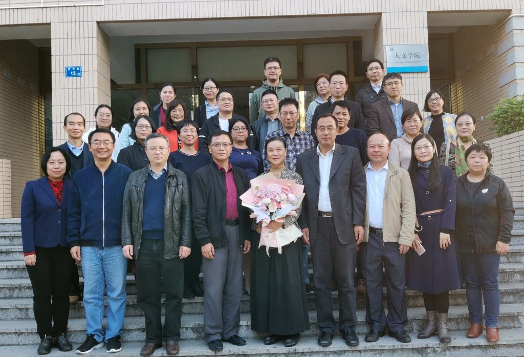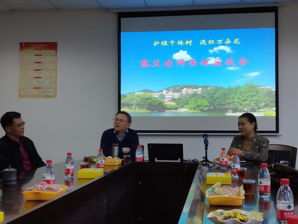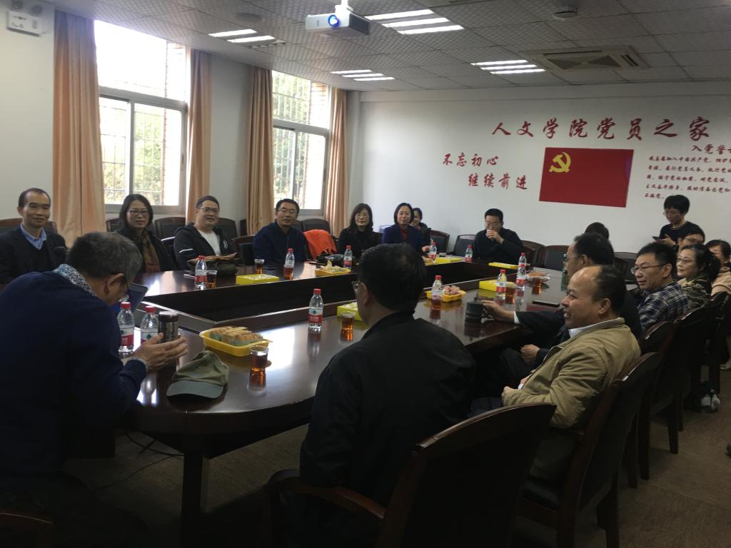 为响应教育部《关于加强和改进新时代师德师风建设的意见》中关于提高全社会尊师重教的总体号召,让广大教师在岗位上有幸福感、事业上有成就感、社会上有荣誉感,让教师成为让人羡慕、最受社会尊重的职业,在校人事处、人文学院、中文系领导的支持下,中文系工会于2019年12月16日下午3:30至5:00点,在联兴楼101室顺利举行黎兰老师荣休座谈会。校人事处代表曾天从、人文学院院长朱菁、中文系系主任代迅及中文系教职员工共30多人与会。座谈会取得了圆满的成功。