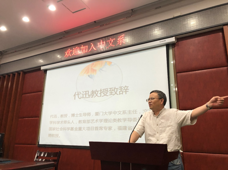 代迅主任就“我眼中的厦大”、“珍惜青春”、“治学”与同学们展开交流;教授胡旭、李晓红、郑泽芝分别从汉语言文学、戏剧与影视文学、汉语言三个方向指导学生们的专业学习,让同学们知晓中文系的辉煌历史,懂得目前应该做些什么,以及创造怎样的未来,期待同学们都有锦绣前程。王烨书记从自身感触出发,希望同学们能够开拓视野、锻炼身体、学有所长。师生问答阶段,教授们耐心解答了同学们的困惑,鼓励他们致力于学业。