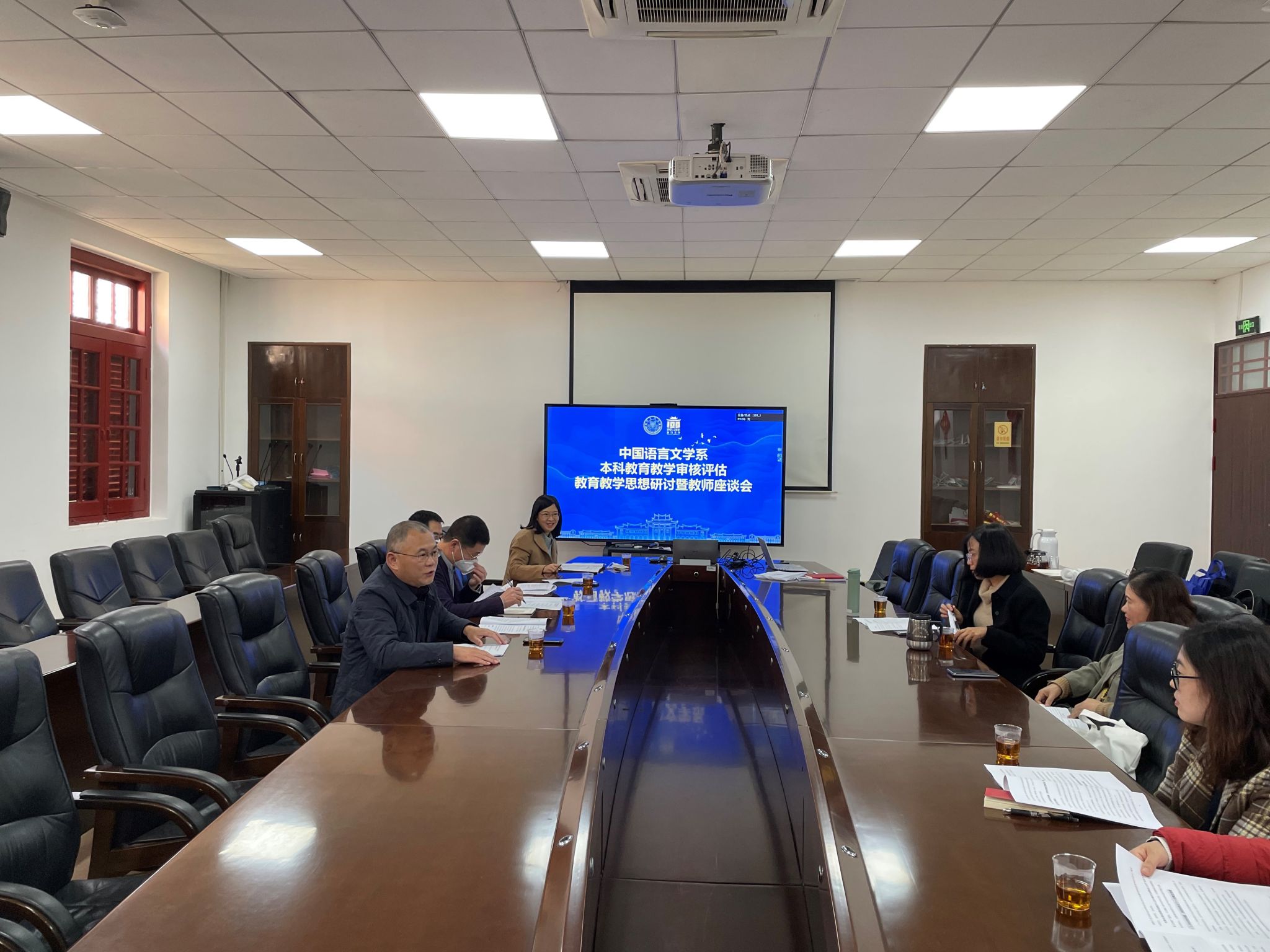 为进一步做好本科教育教学审核评估工作,提升本科教育教学水平和人才培养质量,2月16日下午,中国语言文学系教育教学思想研讨会在南光楼320会议室召开。系党委书记高忠华、系副主任徐勇、系副主任李焱、系党委副书记葛学凤、教师代表、本科教学秘书参加会议,会议由系副主任徐勇主持。