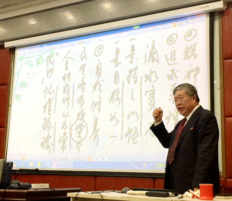 同时,程先生还阐明了自己对人生理想与人文素养的理解和看法,即通过古典诗歌的宣扬来展示中国传统文化中对劳苦大众的人文关怀和尊重,对民族精神的抚育和培养,对现实生活的关注和悲悯,对父母的感恩和报答,对国家民族的大爱和赞颂,自然而然地道出了“文以载道,说诗育人”的精神实质。程教授希望同学们能够继承古典诗歌突显出来的人文精神传统,并勉励厦大诸君要努力奋斗,持之以恒、目标明确,树立大志,“创造一个第一,载入一个史册”,要始终存有知恩、感恩、报恩之心,对给予自己身躯和血肉的母亲,教会知识与智慧的母校,赋予尊严与精神的祖国,当“滴水之恩,涌泉相报;涌泉之恩,大海相报”,力求用博大的胸怀看待世界、看待人生,不断提升自我修养,积极养成健康、健全的人格。