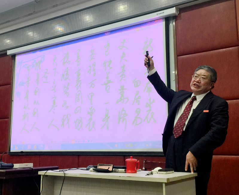 程教授以一人、一笔、一白板等素简的教学方式,尽显语言的张力与魅力,将千年风雅演说的激情澎湃、酣畅淋漓,辅之以挥洒自如、纵横捭阖的书法板书和信手拈来、随口吐出的古典诗词吟诵,以诗载道,引经据典,风趣幽默,气势恢宏,使整个演讲极富感染力、穿透力和震撼力,给人视觉、听觉的双重审美享受与愉悦。在短短两个小时的讲学中,程教授引领听众一步步感受中华千年诗歌文化的精髓,并不时穿插许多个人的生命经历和情感体验,将深刻的人生哲理与意蕴娓娓道来,让人身临其境、感动其间、品味其中,彰显出了中国哲学的人文情怀和优秀传统文化的永恒魅力,“润物细无声”,予人深刻教育与启迪。讲到动情处,台上台下同声共鸣,无语哽咽。师生文友们大赞此别开生面的讲座实乃文学盛宴。最后,林丹娅教授代表学校向程教授赠送了南强学术讲座的纪念奖牌,共同期待后会。(中文系张经洪报道)