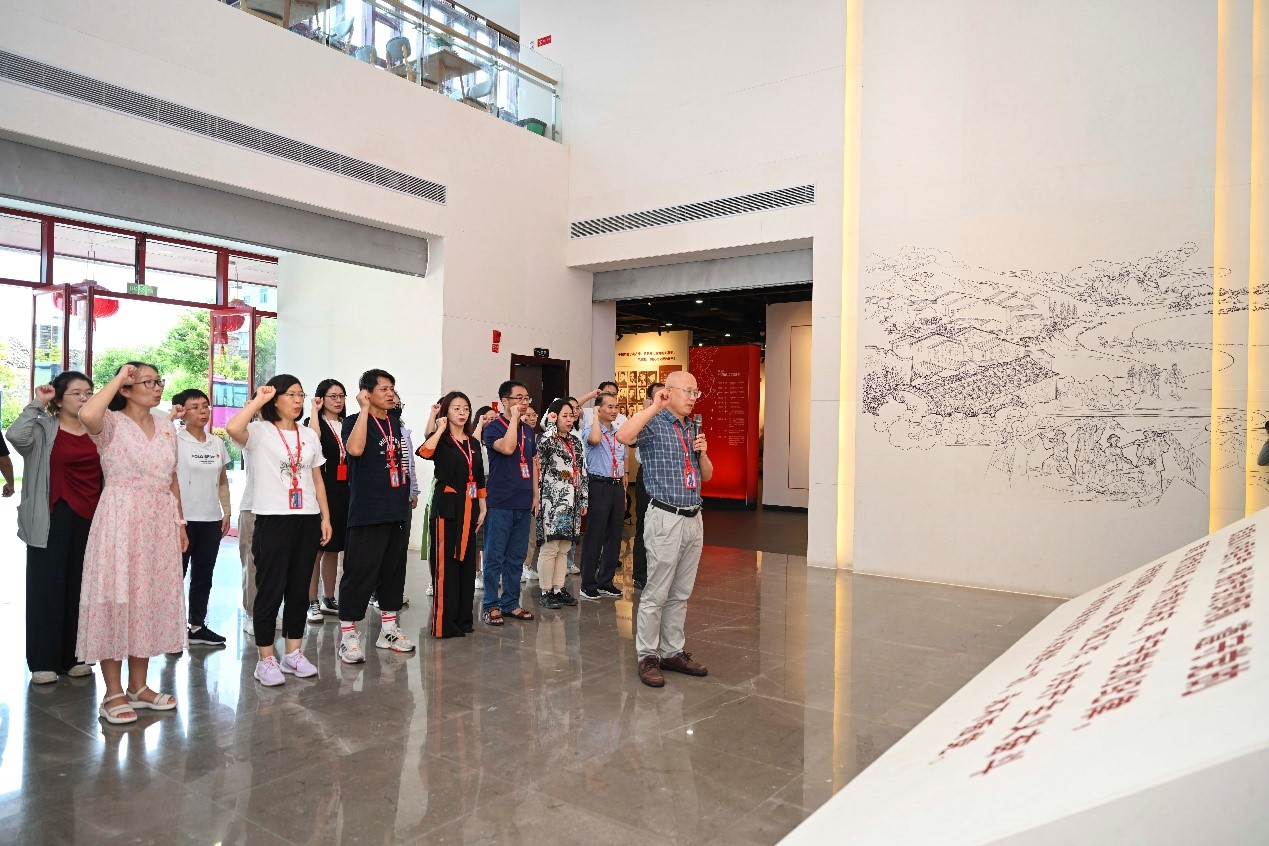 “我志愿加入中国共产党,拥护党的纲领,遵守党的章程……”在正逢过“政治生日”的李无未教授的带领下,全体党员高举右拳,重温入党誓词,洪亮而坚定的宣誓声,在主题党日馆久久回荡。