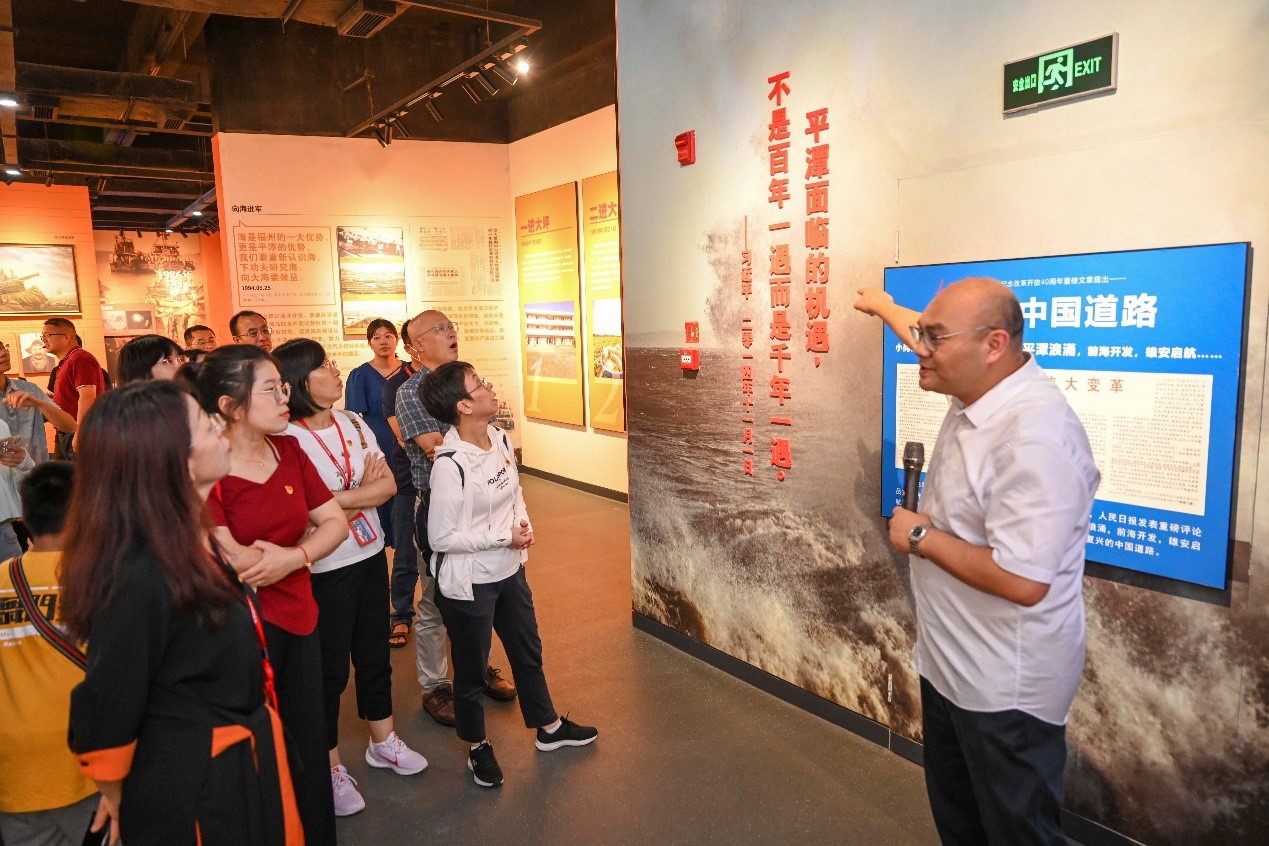 中文系一行首先来到平潭综合实验区主题党日馆,通过实地参观、听取讲解、观看展板等方式开展现场教学。展馆内“海坛烽火”“岚岛新天”“平潭浪涌”三个篇章为大家系统展示了平潭自1921年至今在中国共产党的领导下在革命、建设和改革开放方面取得的辉煌成就。大家详细了解了习近平总书记在闽工作期间十年二十次到平潭调研的有关情况,深刻理解了调查研究是做好各项工作的基本功。平潭综合实验区始终坚持以习近平新时代中国特色社会主义思想为指导,深入贯彻落实习近平总书记关于平潭工作的重要讲话和重要指示批示精神,牢牢把握“一岛两窗三区”战略定位,不忘初心,砥砺前行,奋力推进经济社会高质量发展。