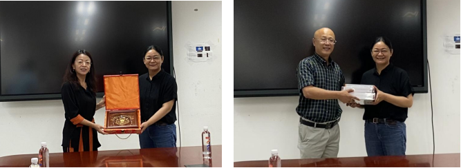 座谈会后,黄宇霞、李无未分别代表厦大中文系向清华大学人文学院赠送纪念品,并合影留念。