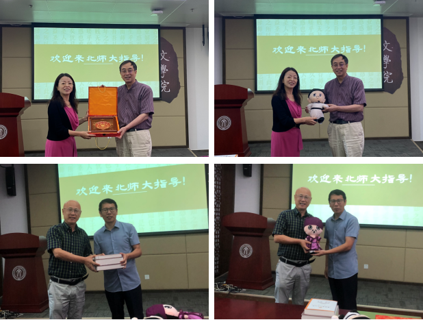 座谈会后,黄宇霞、李无未分别代表厦大中文系与北师大文学院代表王立军、周云磊互赠纪念品,并合影留念。