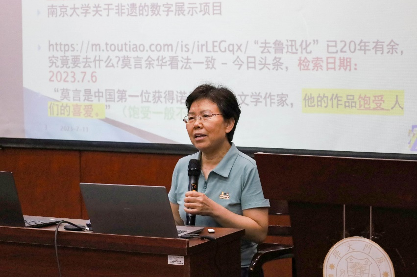 在学术讲座环节,郑泽芝老师为同学们做了题为《应用语言学及其研究方法漫谈》的学术报告,说明了文学、语言学与艺术间的关系,比较了理论语言学与应用语言学理论的异同,引导同学们思考简化字的缘由和趋势、应用研究基本单位的字本位和词本位说等问题,并简要介绍了应用语言学的意义及其发展方向。