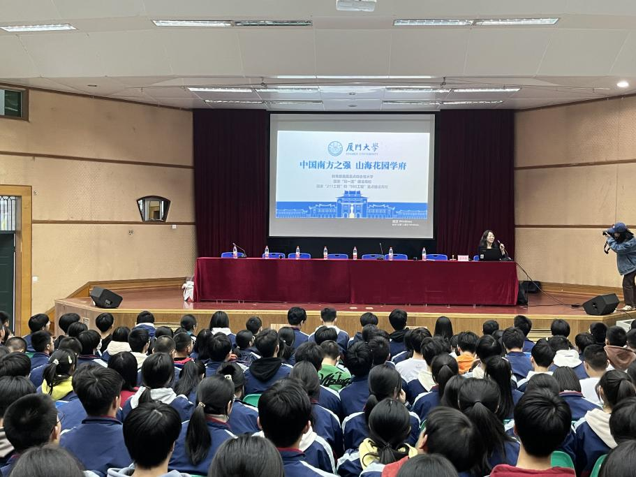 黄宇霞以“中国南方之强·山海花园学府”为题,向同学们从“厦门大学是所怎样的学校”“在厦门大学学习有怎样的体验”“厦门大学毕业生发展怎样”“怎样进入厦门大学学习”四个方面介绍了厦门大学,鼓励莘莘学子踊跃报考厦门大学。