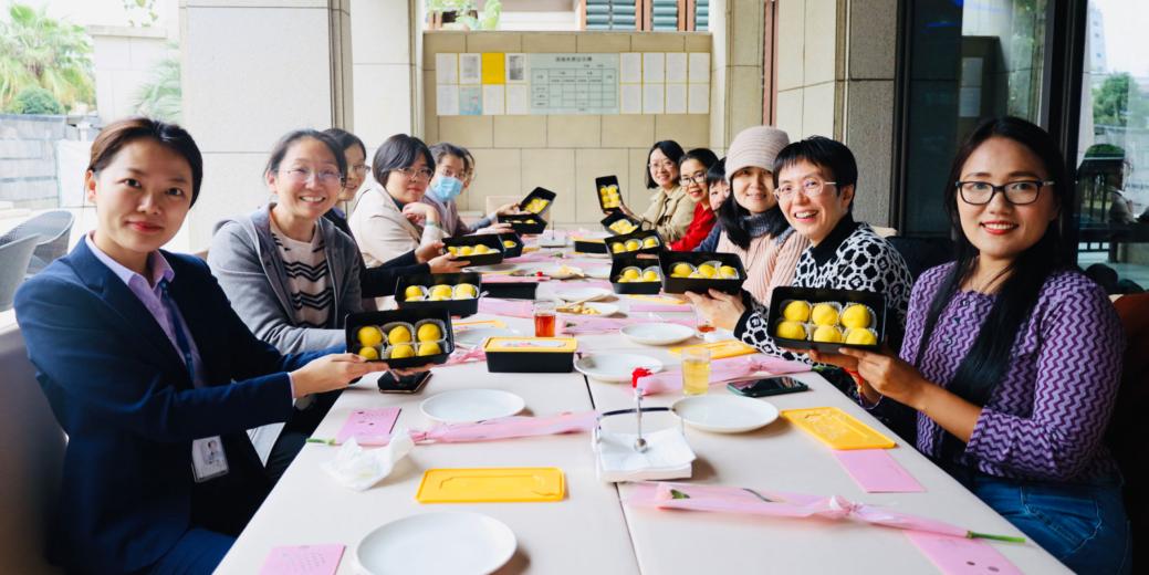 在依山面海、风景优美的鹭江·佲家酒店,老师们欢聚一堂,每位女老师都收到一支鲜花作为礼物,现场氛围热烈愉快。在星级大厨的指导下,心灵手巧的中文系女神们成功制作出一个个精致香甜的流沙包和芝麻球,不仅体验到了亲手制作美食的乐趣,更增进了彼此之间的友谊和交流、增强了中文系老师们的凝聚力和向心力。