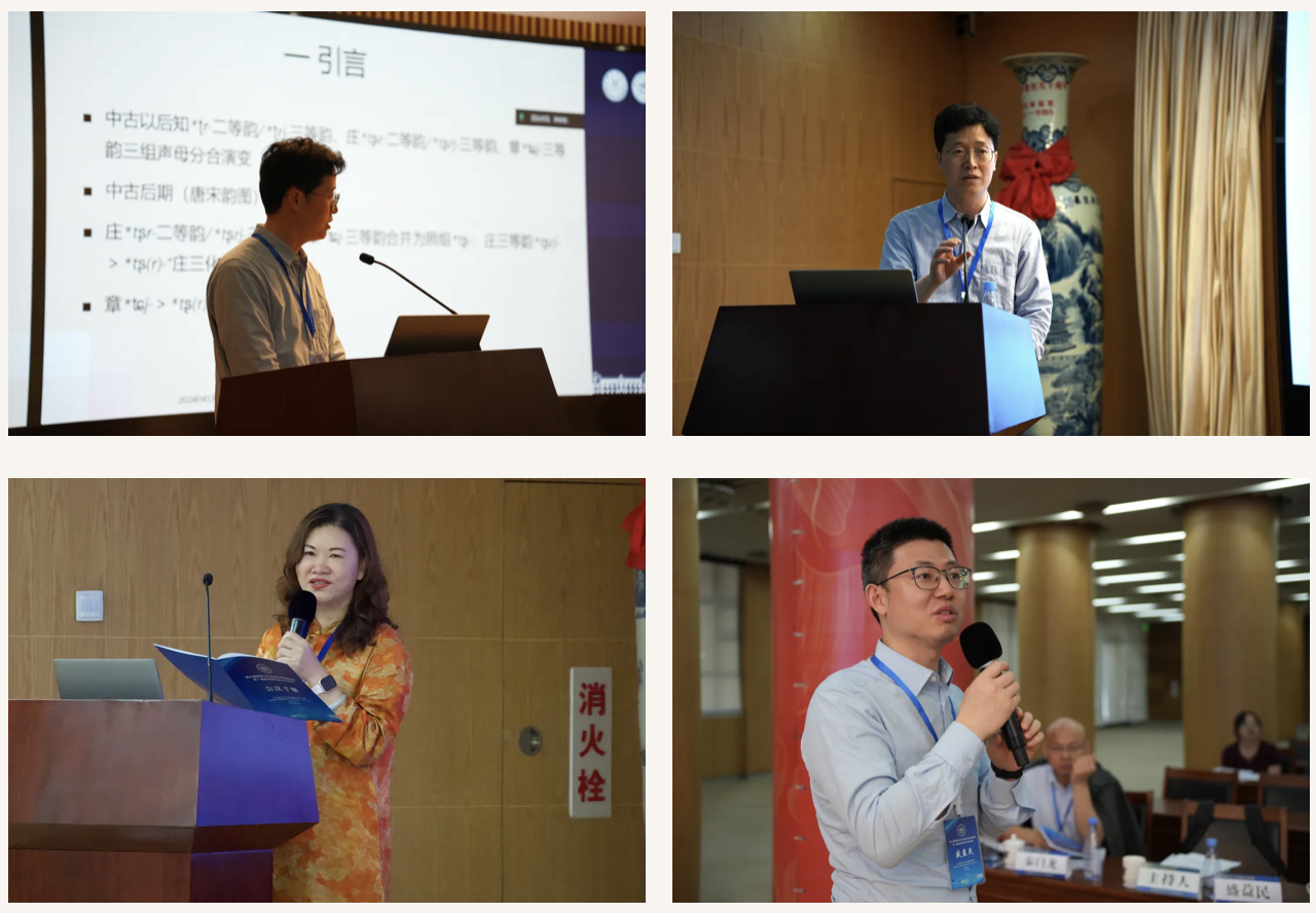 汪银峰教授针对通语文献类小组的报告做总结,指出该组研究呈现“宏观研究与微观研究相结合”“传世文献和出土文献相结合”“语音问题探讨与语言思想史分析兼顾”的特点,其中,涉及上古音研究的3篇论文利用古文字资料着重探讨了上古音历时音变的问题;涉及中古语音研究的4篇论文以史记三家音注、止摄字用韵、曾梗摄合流的方言差异等为研究主题;近代音研究的4篇论文研究对象涉及《蒙古字韵》、术语“纽”及“声纽”、赵培梓《剔弊增补五方元音》及《吉林省方言集录》。