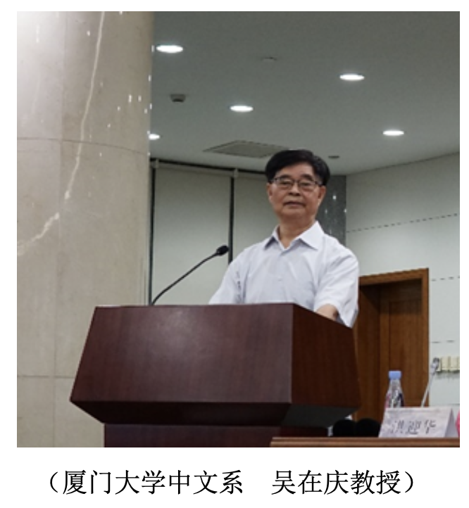 接下来,厦门大学中文系吴在庆教授满怀深情地回忆了建国后到现在半个多世纪以来复旦中文与厦大中文两校、两系之间密切的人员交流和学术交往的历程,谈到了从上世纪五十年代分配到厦大工作的应锦襄教授到本世纪初引进的胡旭教授等复旦毕业生对厦大中文系教学科研水平的贡献。又谈到上世纪八十年代自己与复旦大学中文系陈允吉教授、陈尚君教授在参与《中国文学家大辞典》《唐才子传校笺》等重要著作的集体编撰中所结下的深厚情谊。最后,吴老师向论坛表达了真挚的祝贺,认为这次论坛是两校中文系学术交流史上的一个新的建树、新的创举,祝这次论坛能够取得圆满成功。