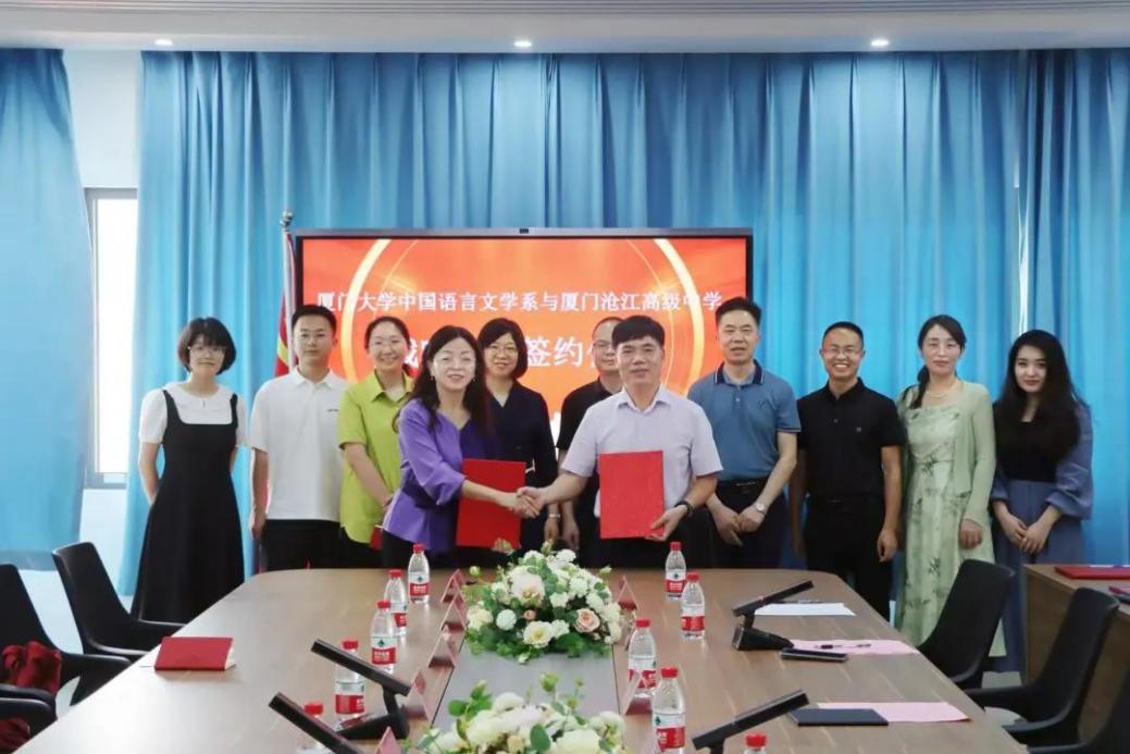 厦门沧江高级中心全体中层干部、厦门大学中国语言文学系办公室主任与辅导员等出席仪式。未来,双方将建立更加紧密的合作关系,共同探索高等教育与基础教育在中文领域合作的新模式、新路径。