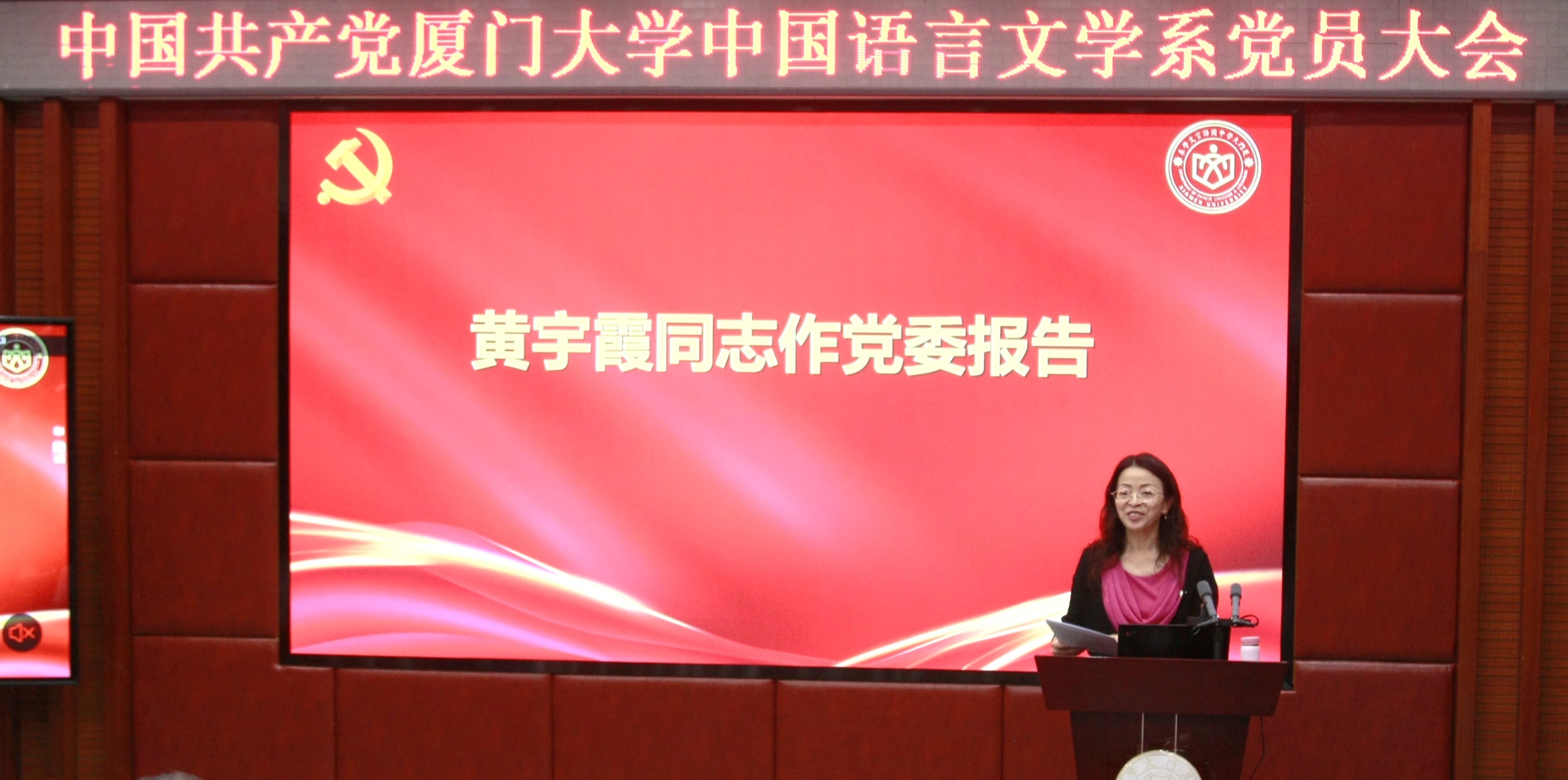大会在庄严的国歌声中拉开帷幕。系党委书记黄宇霞作题为《凝心聚力,砥砺奋进——以习近平文化思想为指引,展现厦大中文责任担当》的报告。