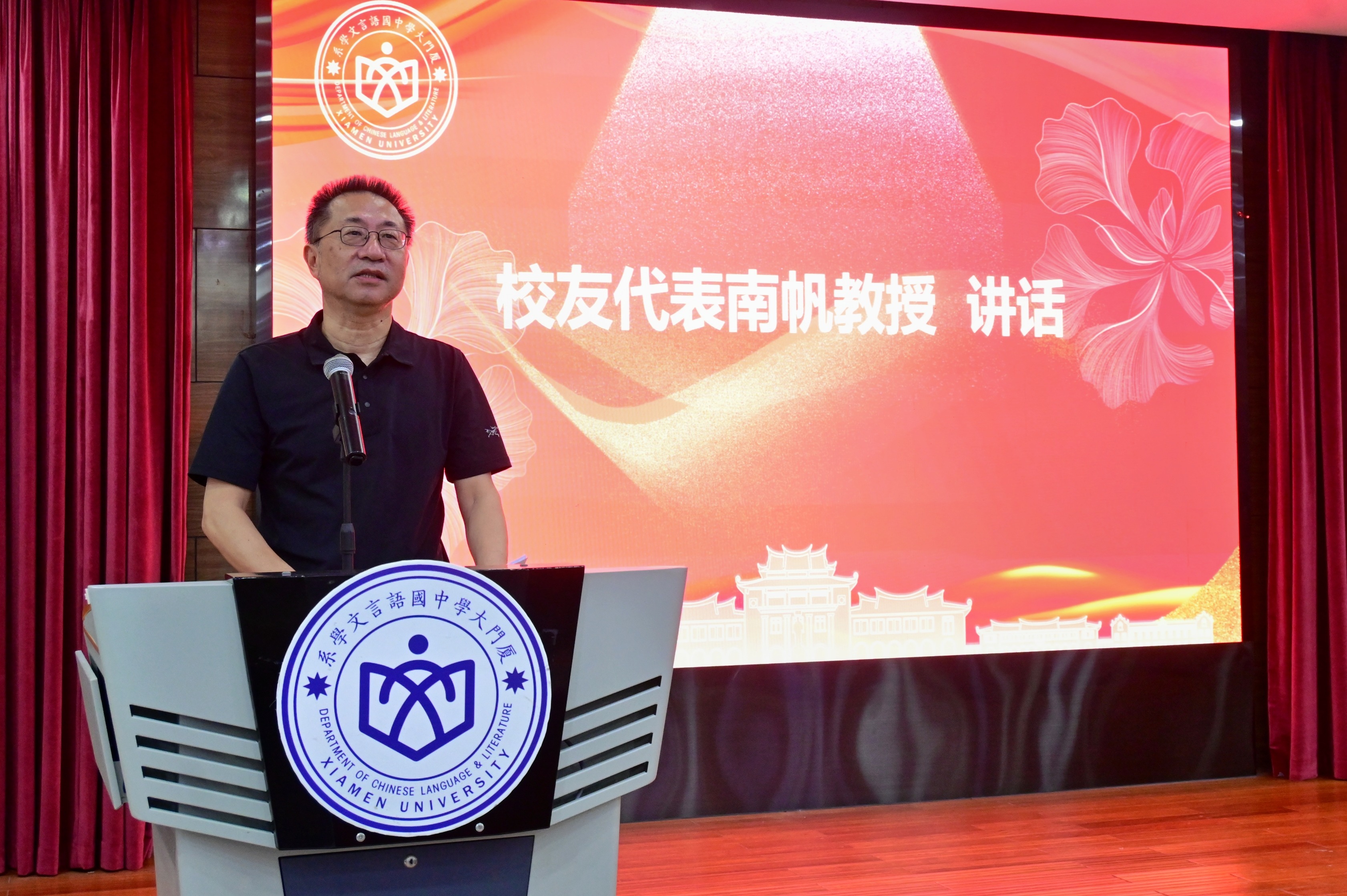 厦门大学中文系77级系友、原福建社会科学院院长、福建省文联主席、中国文艺理论学会会长、国务院政府特殊津贴专家南帆教授希望同学们能够及时转换思想观念,尽快融入大学生活,体悟学习新知带来的成就感与文学的独特魅力。同时,南帆讲述了人文科学在当今社会的重大意义,希望学弟学妹们不仅要修身养性,更要带着解决问题的目标去学习和阅读,共同营造良好的社会文化氛围。