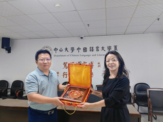 回溯历史,两校中文学科底蕴深厚、源远流长,鲁迅、顾颉刚、罗常培等名师大家的身影在两校间交相辉映,成为连结两校中文学科友谊的桥梁。座谈会后,调研团队参观了中山大学中文系系史馆,双方互赠纪念品,并合影留念。