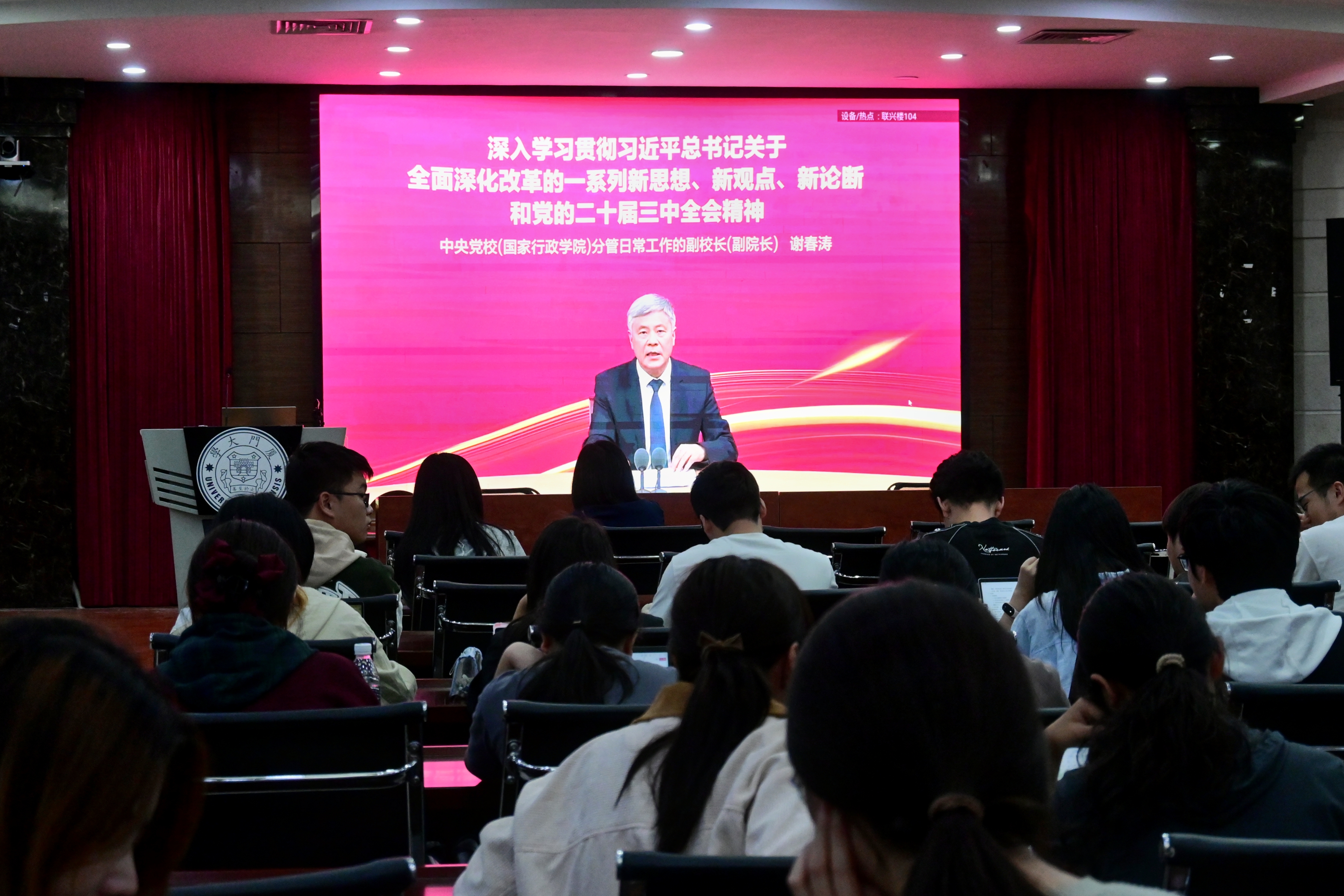 开班仪式后,120余名学生入党积极分子集中观看由中共中央党校(国家行政学院)分管日常工作的副校长(副院长),中共二十届中央委员,中国现代史学会会长谢春涛主讲的“深入学习贯彻习近平总书记关于全面深化改革的一系列新思想、新观点、新论断和党的二十届三中全会精神”视频课程。30余名新发展党员集中观看《榜样8》视频课程。