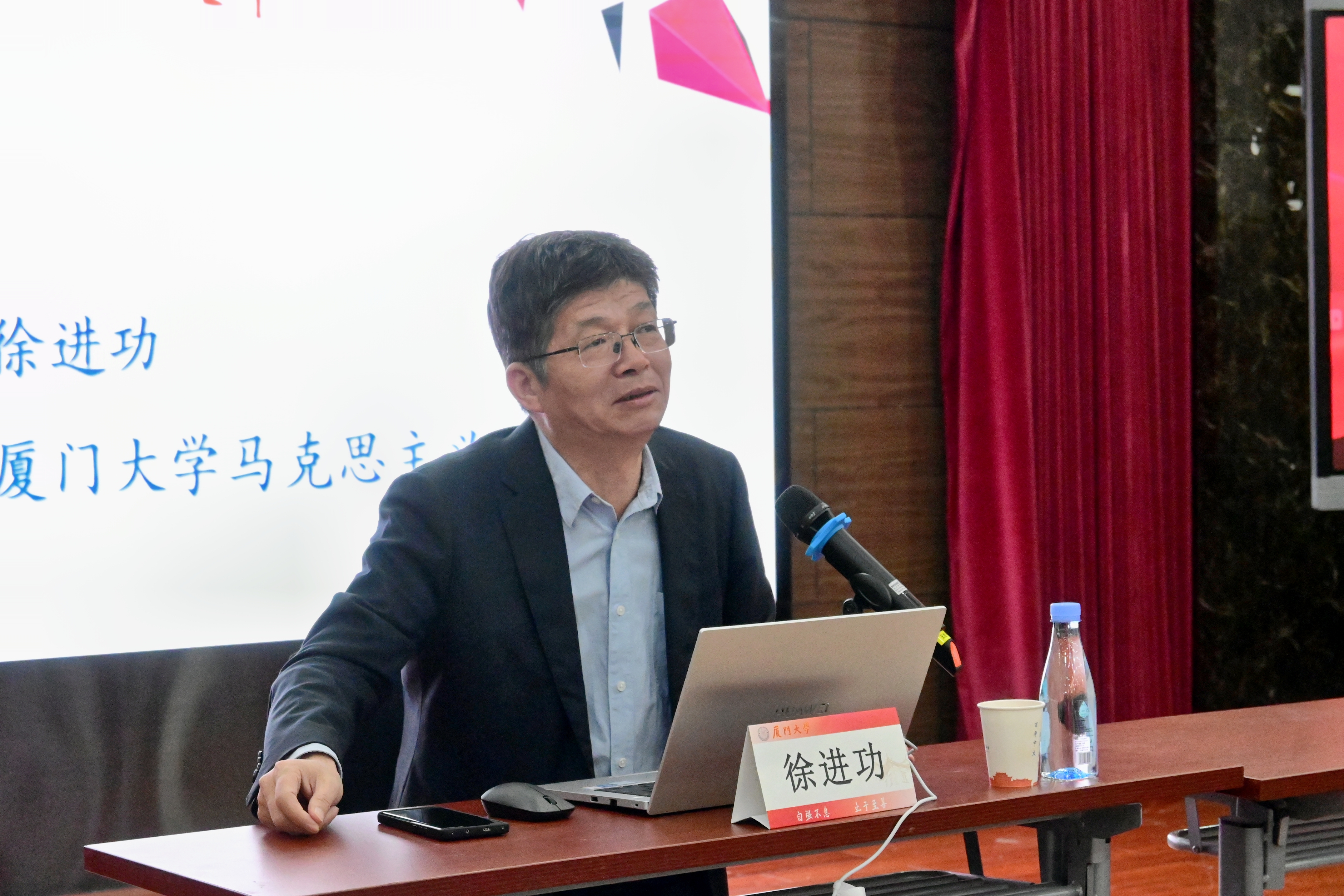 厦门大学党委原副书记、马克思主义学院院长徐进功教授应邀做题为《深刻把握进一步全面深化改革的三重维度》的专题报告。徐进功从学习贯彻党的二十届三中全会精神的重要性和必要性出发,结合个人丰富的经历、国内国际热点事件等实际案例,以深入浅出的方式,详细阐释了进一步全面深化改革的重大意义和总体要求、关键举措和根本保证。面对当前复杂的国际国内形势、新一轮科技革命和产业变革,以及人民群众的新期待,徐进功用“六个必然要求”和“四个迫切需要”强调了进一步全面深化改革已成为推进中国式现代化的必然要求。他指出,全会报告以“一个总目标”和“七个聚焦”明确了进一步全面深化改革的总体目标,提出了在改革中要遵循的“六个坚持”的重大原则。最后,徐进功鼓励师生要坚守革命本色,明确“我是谁、为了谁”,思考“从哪来、到哪去”的问题,永葆改革初心,勇担时代重任。