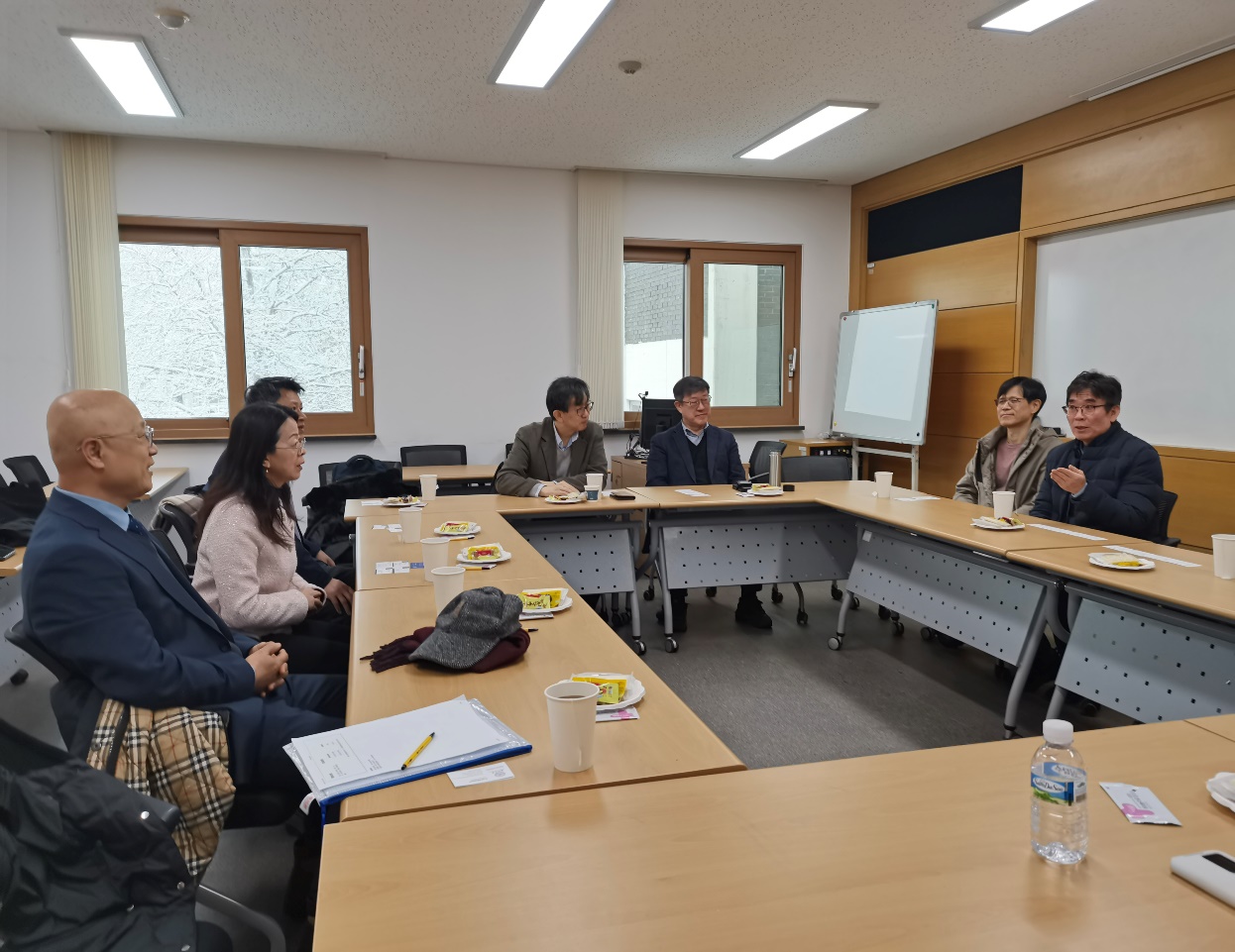 11月27日,调研团一行与高丽大学中文系主任高点福教授、张东天教授、吴有晶副教授等六位教授举行了座谈。座谈会上,双方积极互动,围绕学术合作这一核心议题,尤其是在学生培养方面的交换项目、双学位联合培养以及硕博学位合作机制等合作性框架问题展开了深入且富有成效的探讨,为未来可能的合作勾勒出了清晰的蓝图。此外,双方还针对中文学科当前所面临的诸多困难,如学科发展瓶颈、人才培养挑战等,进行了深度交流,并共同探讨了相应的应对策略,为推动中文学科在新时代背景下的发展提供了新的思考方向。