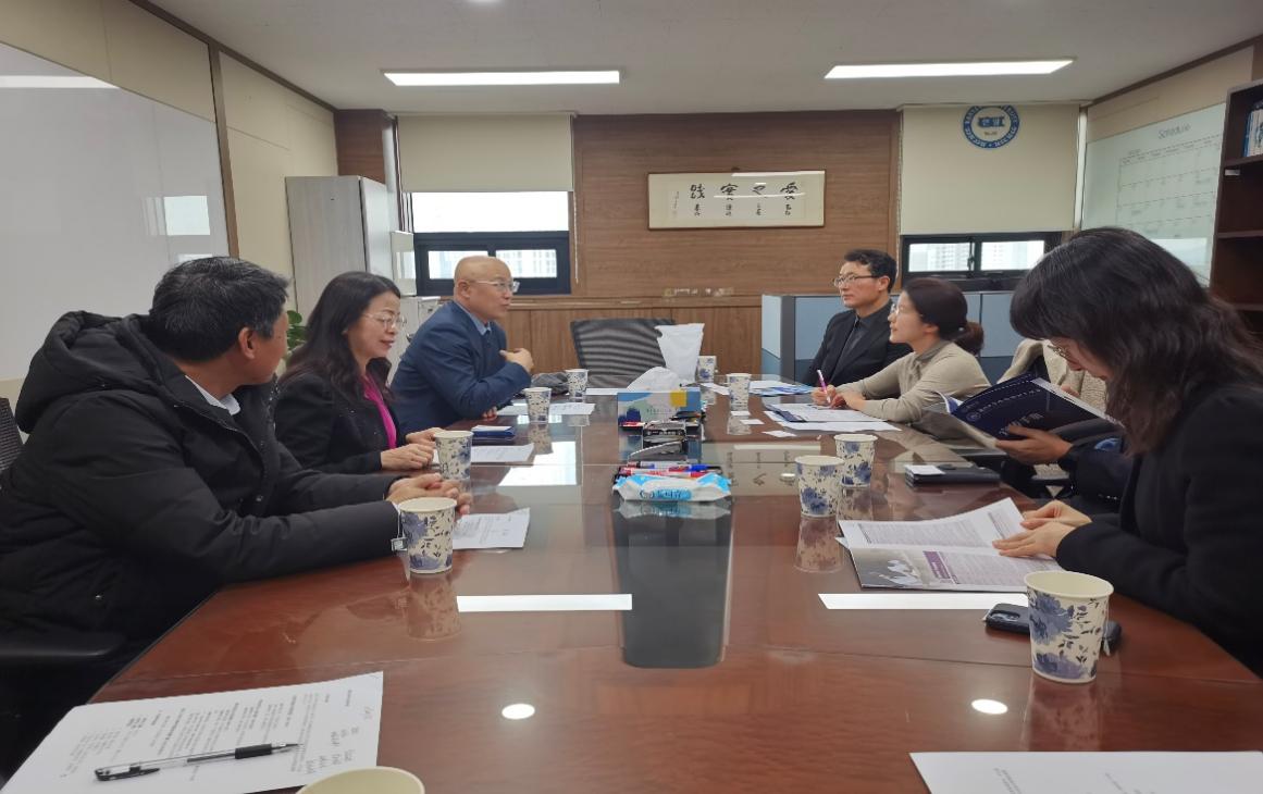 11月26日,调研团一行前往汉阳大学人文学院进行访问交流。汉阳大学人文学院院长高光敏教授、中文系主任白知永教授、原人文学院院长严翼相教授等多位教授参加座谈。白知永系统介绍了汉阳大学中文系在系所建设、学科现状、国内国际评价以及毕业生发展等方面的情况。双方围绕各自具体的专业方向与学生培养等关键问题展开了深入研讨,在如何建立长期稳定的学术交流关系、互派学者进行高端学术访问、开展学生双学位项目、优化交换项目以及完善攻读硕博学位合作机制等方面的可行性问题上,进行了热烈讨论,现场气氛活跃,思维碰撞激烈。调研团一行还应邀参观了汉阳大学校史馆和图书馆,进一步增进了对汉阳大学发展历程的认识,深刻感受到了该校深厚的学术积淀与卓越的学术成就,为两校未来在多领域开展深度合作提供了更丰富的思路和方向。