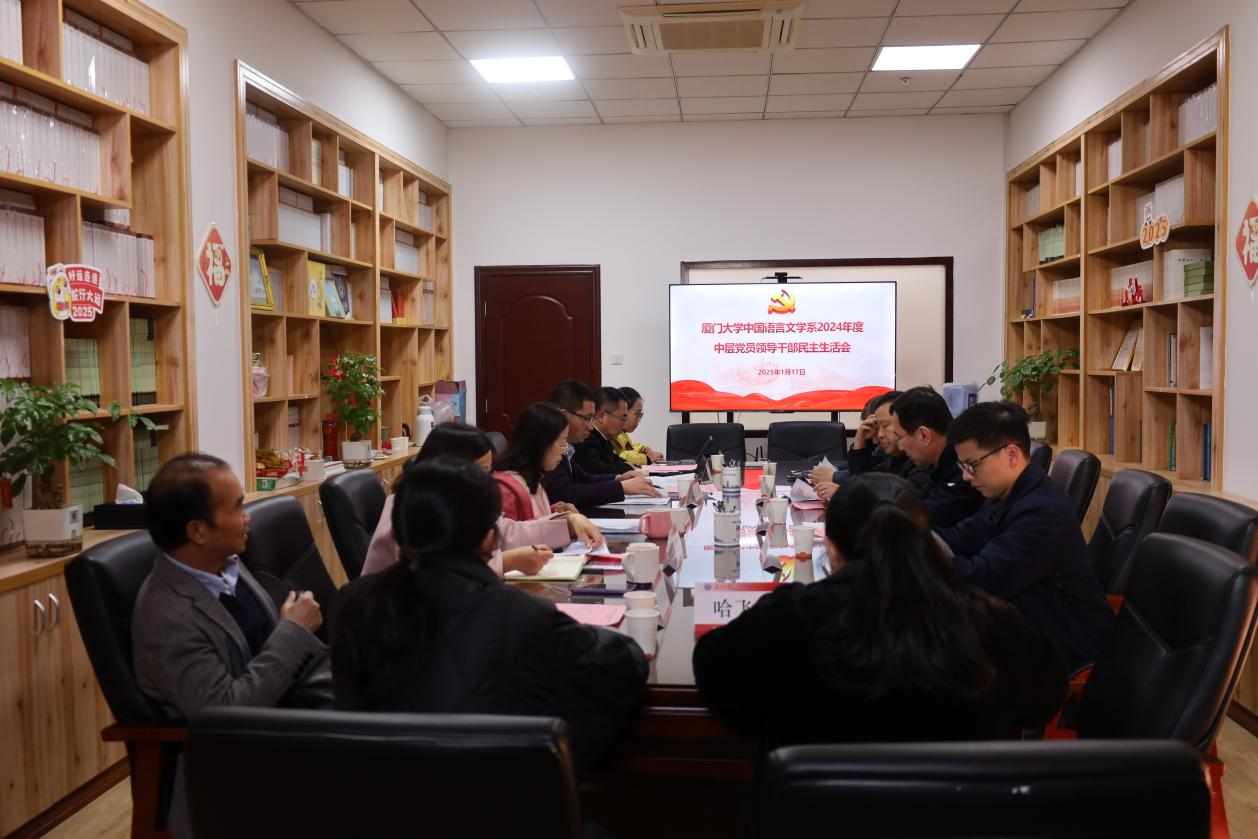 2025年1月17日下午,中国语言文学系召开2024年度中层党员领导干部民主生活会。校第五督导组组长曾国斌、副组长朱少龙,校纪委委员陈东军,基层党建工作联络员王康平到会指导。中文系党员领导干部参加会议,系党委委员、非党员领导、科级干部代表等列席会议。会议由系党委书记黄宇霞主持。